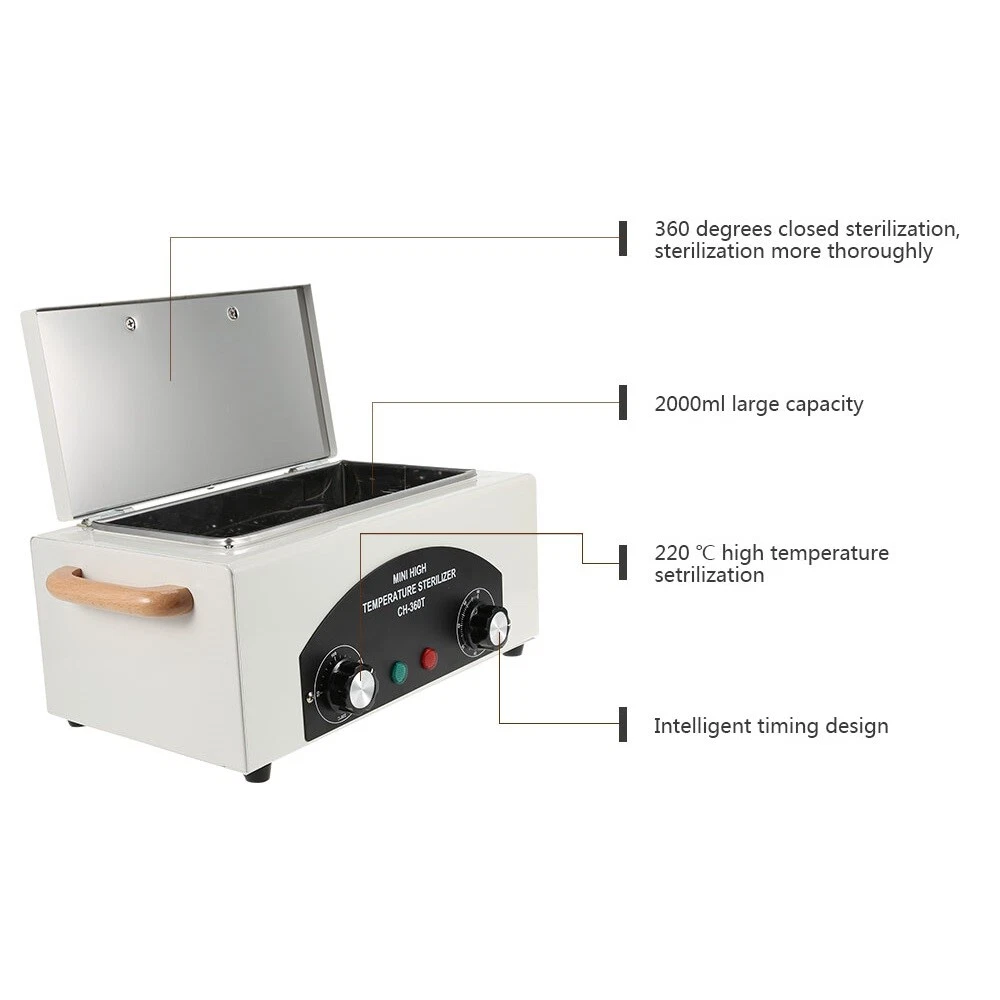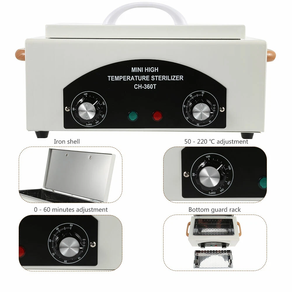 moban2 Description High Temperature Sterilizer Box with Hot Air Disinfection for Nail Art Tools US Features Description: This high temperature manicure sterilizer is designed to disinfect the nail tools and procedures, as well as for cleaning.The inner thermal reservoir block is made of stainless steel and it has a removable container for storage and sterilization instruments. And dry heat sterilizer kill bacteria without moisture and will not dull sharp instrument. Such wonderful goods, just bring it home! Features: 1. This hot air sterilizer is designed to disinfect the nail tools and procedures, as well as for cleaning. 2. The inner thermal reservoir block is made of stainless steel and it has a removable container for storage and sterilization instruments. 3. Temperature regulator + light indicator make it possible to adjust the appropriate temperature for sterilization. 4. Dry heat sterilizer kill bacteria without moisture and will not dull sharp instrument. 5. Sterilization by dry heat works without pressure, steam, or chemicals, which increases safety, and it dose not require routine cleaning. 6. Utility tray can be sterilized with lids on and stored without contamination. 7. Sterilizers also have automatic timers with heat "hold" capacity for continuous use in a very active practice. Specification: Condition: 100% Brand New Item Type: Hot Air Sterilizer Material: Iron + Stainless Steel Color: White Timer: 60min Adjustable Temperature: 50~200 ℃ Adjustable Voltage: AC110V Power: 300W Frequency: 50~60HZ Size: Approx. 31 * 18 * 15cm / 12.2 * 7.1 * 5.9inch Package Weight: Approx. 3460g Package Included: 1 x Hot Air Sterilizer 2 x Trays 2 x Pick-Up Rings 1 x Power Line 1 x English Manual Statement (FDA) The sale of this item may be subject to regulation by the U.S. Food and Drug Administration and state and local regulatory agencies. If so, you can bid it on this item only if you are an authorized purchaser. If the item is subject to FDA regulation, I will verify your status as an authorized purchaser of this item before shipping of the item. Payment a) Paypal accepted. b) Please accomplish payment within 7 days after purchase. If you do have any reason cannot make payment timely, kindly please email me. Otherwise, all unpaid items will be filed an unpaid item dispute through eBay. c) Import duties, taxes and charges are not included in the item price or shipping costs. These charges are the buyer's responsibility. Please check with your country's customs office prior to bidding/buying to determine what these additional costs will be. Delivery Details Note: We can offer the tracking number for u to check the status of your item in 2 days after we deliver it. For international shipping, customs duties might be possible for some countries, they are buyers'responsibility, Hope his could be understood. S&H charged dose not include any those fees. We are not responsibility for the delay of clearance in the buyer's country, but we will help you clear as suppling some files. If the item is in customs or post office for some days, pls contact with local customs actively, otherwise, if the item returns to us, the buyer will pay for the shipping fee for resend or refund except the shipping fee. Few states need to pay remote surcharge. Don't worry, I will tell you before you pay if it's need. You can email us in 1-2 days to change ur shipping address, or we are not responsible for it after we deliver ur products. Return Policy Your SATISFACTION is our ultimate goal. We work hard to earn your trust and future business. a) Please check the package first before you sign for the package. If the package has any damage, please file a claim on your local shipping company. b) If you have a defective item, you can return it or ask for a discount. Please contact us within 2 days after you receive the package. c) What you returned must be unused and in the original packaging as received. Customer is responsible for shipping charges on returned items. d) We will refund the money to you when we get the return items. Or replace item for you. Terms of Sales Please leave us your phone number for smooth and fast delivery. Our prices does not include any taxes, VAT and other hidden charges. Buyers should be responsible for your customs duties if there is any. If you need some profiles, please contact us. We will attach it via Email. About us We are factory founded dental equipment Wholesaler and Retailer. We offer 1 full year warranty for most of our items(please contact us for more info). Each item will be quality checked before shipping to our customers. Contact us If you have any questions about our service or products. You can send us eBay message or Email. You will be replied within 24 hours(48 hours in the weekend).