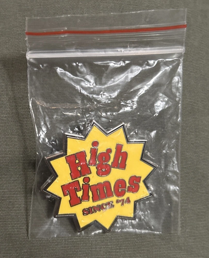 This vintage High Times magazine pin is a must-have for any collector of antiques and collectibles. The pin features the iconic yellow and red letters logo of the publication, making it a great addition to any lapel or hat collection. Published in February 1974, this collector's edition pin is a rare find for fans of the genre. The pin is in excellent shape and is sure to impress any fellow collector. Don't miss out on the opportunity to add this unique piece to your collection today!