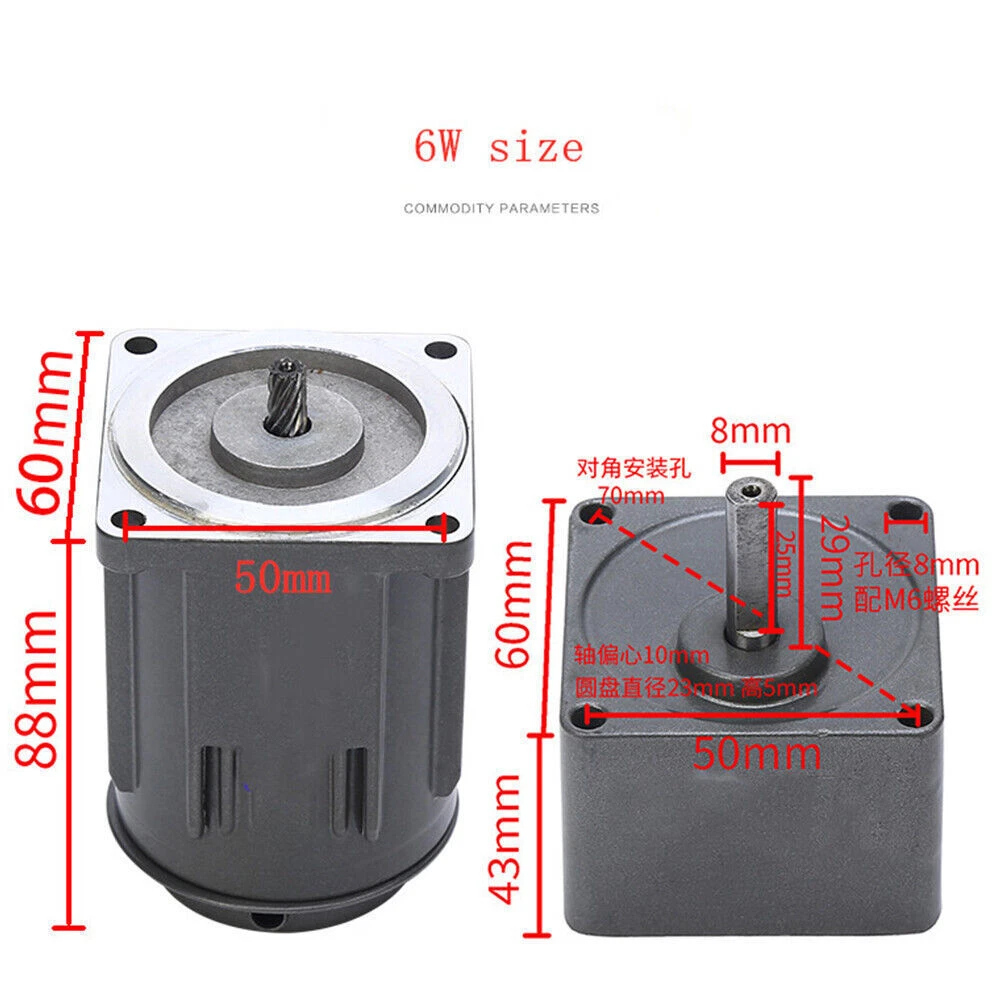 Specification: l Name: geared motor l Rated voltage: AC110 V l Rated speed: 27RPM/MIN l Reduction ratio: 1:50(50K) l Power Phase: single-phase l 6W geared motor:88mm*60mm*50mm l Reducer size: 43m*60mm*50mm l 6W gear motor Output speed: 27~0RPM Features: l Flexible installation l Efficient works l Torque large l Smooth operation l Long working life High Torque Gear Motor AC Electric Motor w/Variable Speed Controller 1:50 27RPM Welcome~ Specification: l Name: geared motor l Rated voltage: AC110 V l Rated speed: 27 RPM /MIN l Reduction ratio: 1:50(50K) l Power Phase: single-phase l 6 W geared motor :88mm*60mm*50mm l Reducer size: 43m*60mm*50mm l 6 W gear motor Output speed: 27~0RPM Features: l Flexible installation l Efficient works l Torque large l Smooth operation l Long working life Note: Under different deceleration ratio, the output shaft speed is different. The output shaft speed is equal to the motor speed of 1500 rpm divided by the deceleration ratio. Packages: 1 * Gear Motor 1 * Speed Governor 1 * reducer Note: Based on the industrial standard, to meet different needs of customers, our motor does not include the power cord, you need to purchase the power cord to connect. Payment Delivery details Terms of sales About us Contact us Payment We accept ebay payment 。 Fees such as import duties, taxes are not included in the item price or shipping costs. These charges are the buyer's responsibility. Delivery details Shipping: 2-9 working days to: USA Terms of sales We maintain high standards of excellence and strive for hundred percent customer satisfaction. Feedback is very important to us. We hope that you contact us immediately before you give neutral or negative feedback, so that we can address your concerns. It is impossible to address issues if we do not know about them! About us Your satis faction is our ultimate goal. We work hard to earn your trust and future business. Our certified technicians have tested each item before shipping. The unit comes with 1 year limited warranty on all manufacturing defects. a) If you receive a defective item, you may return it or ask for a discount. Please contact us within 14 days after you receive the package. b) What you returned must be intact and in its original packaging as re? u. Customer is responsible for shipping costs of the returned item. c) We will cover the cost of shipping back t with the shipping rate indicated in the registration page. We will send you a new unit or refund the full payment you paid. Thank you. Contact us Business Hour Business Hour: Monday To Friday: 8:30 AM to 5:00 PM (Beijing China time) Due to time zones, our reply to your questions may not be immediately. But within above working time, we will reply your email within 24 hours. If it's non-workdays, please kindly be patient and wait till Monday. Please contact us with ebay message. Please feel free to contact us if you have any questions. Monday To Friday: 8:30 AM to 5:00 PM (Beijing China time) Due to time zones, our reply to your questions may not be immediately. But within above working time, we will reply your email within 24 hours. If it's non-workdays, please kindly be patient and wait till Monday. Please contact us with ebay message. Please feel free to contact us if you have any questions. Feature 2 Special Fashion Design shipping notice Can not ship to Puerto Rico,Alaska/Hawaii Brand ( 品牌 ) SENDERPICK " ❤Highlights❤" "Nice and Practical, High Quality Packaging " *Feature* *Stable characteristic*, *high reliability* Name geared motor 6W gear motor Output speed 27~0RPM Nominal Rated Input Voltage 110 V Rated speed 27RPM/MIN Rated voltage AC110 V Model AC110 V Reversible/Non-Reversible Reversible Reducer size 43mm*60mm*50mm Power Phase single-phase Current Type AC 6W geared motor 88mm*60mm*50mm Reduction ratio 1:50(50K) Rated Load (HP) 1/10 AC Phase Single Phase Brand SENDERPICK MPN Does not apply