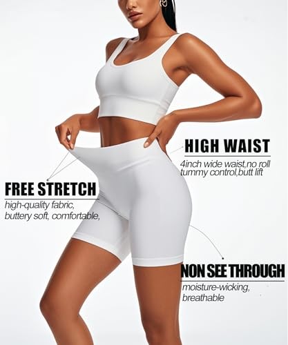 High Waisted 5" Tummy Control Workout Biker Shorts for Women Running Athletic