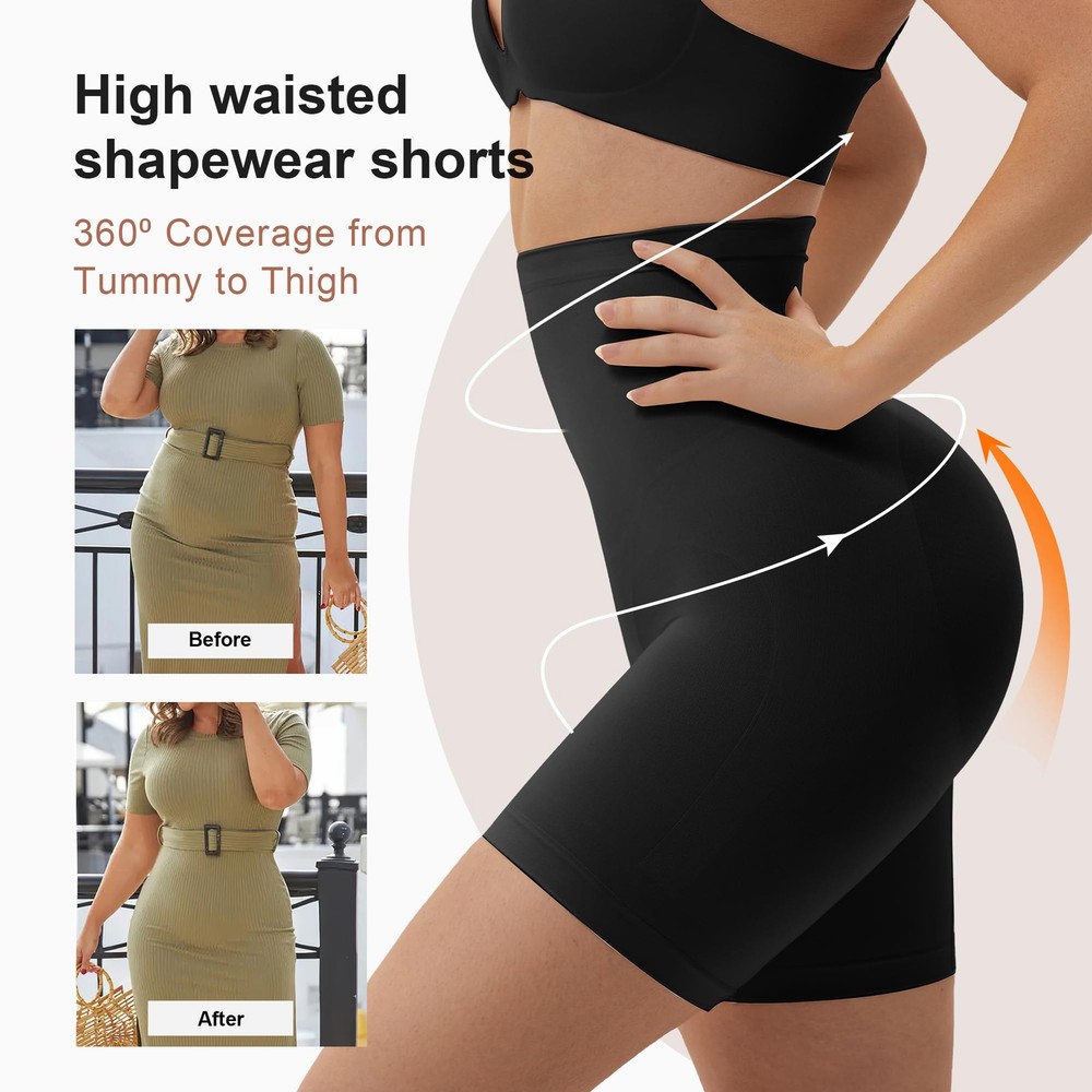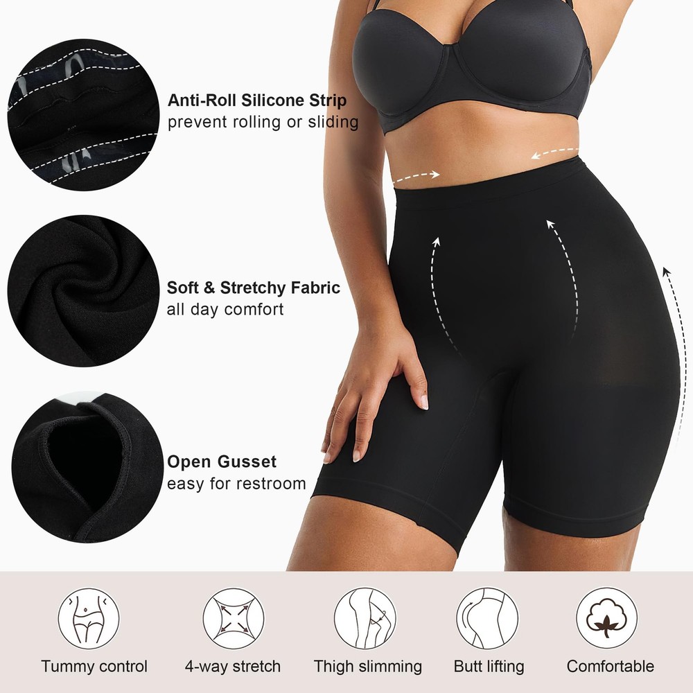 High-Waisted Tummy Control Panties invisible under everything, holds in your core while shaping and lifting your butt. The whisper-soft and seamless construction makes this Butt Sculpting piece a staple for enhancing your body's natural shape. Feature: Tummy Control soft as silk stretchy Thigh Slimming Butt Liftted Back Support Targeted Compression Anti-rolling Silicone Strips On abdomen To Prevent Rolling Invisible Under Dress High-waist underwear brief are suitable for any occasion in life, like weddings, parties, work, parties, conferences, ceremonies, meetings, and any occasion where you want to show your body curves. Tummy control panties: Your shortcut to a toned tummy! High waist design and ultra-elastic fabric, our tummy tucker shapewear flattens the lower belly and shapes your waist, smooths your back, contour thighs, and enhances your butt—all with firm control and comfort. Stay in Place: Our high-waisted shorts feature an innovative anti-roll silicone strip, ensuring the waistband stays in place and prevents rolling or sliding. Whether you're dancing, running, walking, relaxing at home, or wearing them under a dress, or jeans, they stay securely fitted all day long. Comfortable Materials: Tummy control shorts are made of high-quality fabric, lightweight, stretchy, and skin-friendly, providing easy and comfortable for all day long without compromising compression. Seamless Shapewear Shorts: seamless shorts provide all-day shaping without visible panty lines, offering a smooth, invisible look under any outfit. Convenient and comfortable, these shapewear shorts also feature an open gusset for easy use when nature calls. Versatile Body Shaper Shorts: Our shapewear shorts can be worn as a base layer, waist trainer, or butt lifter for any occasion. Whether you're wearing them under a tight skirt for a night out, jeans for a casual outing, or a cocktail dress for a holiday party, these control shorts smooth your curves and stay in place.