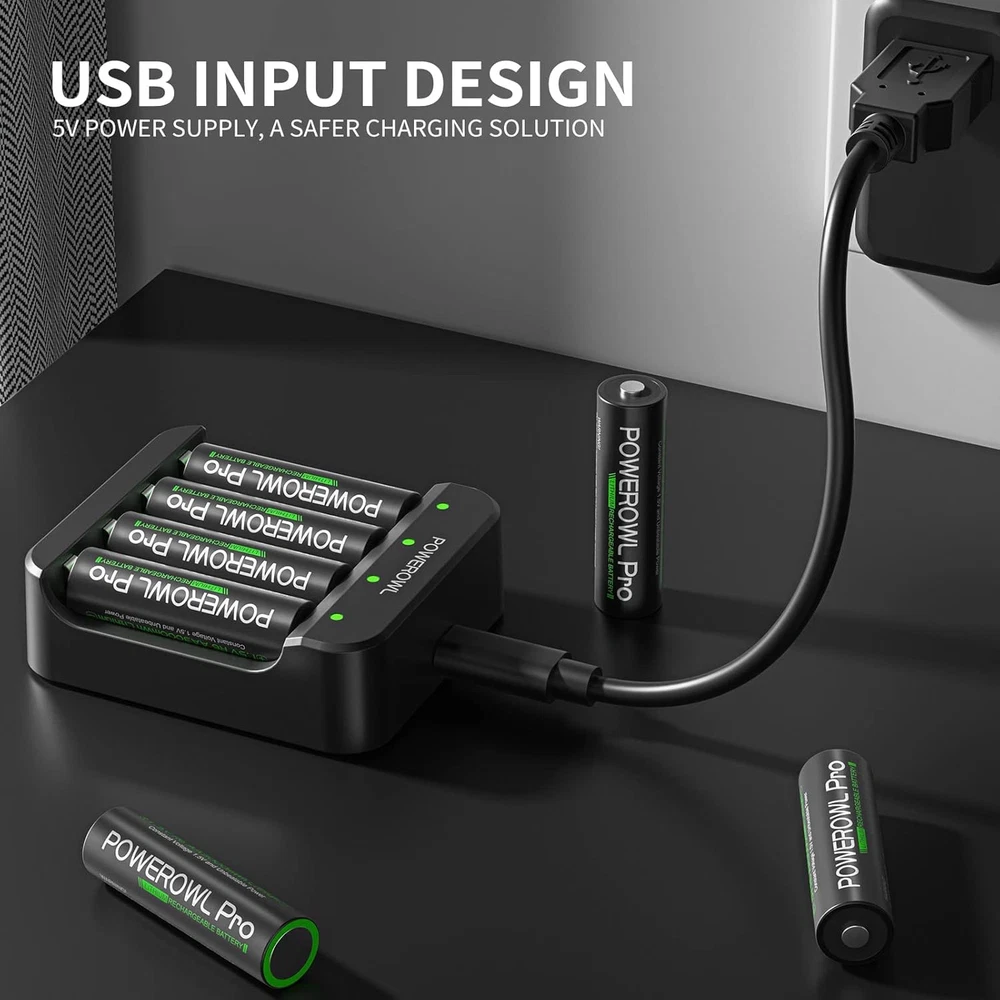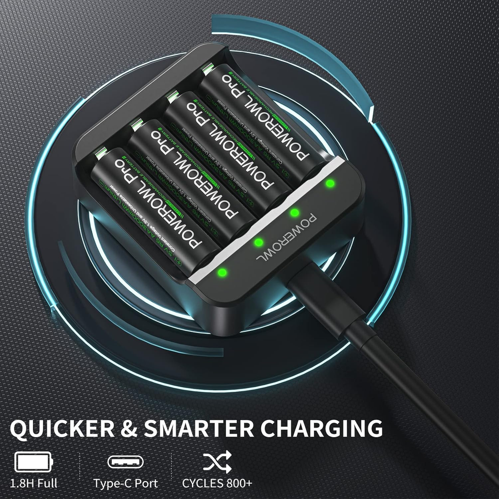 High-Capacity 3000MWh Rechargeable AA Lithium Batteries with Pro Charger