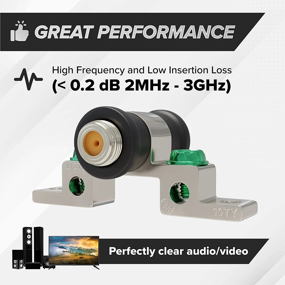 Works With: Satellite, broadband, antennas, and many other devices. Creates Clearer Signal: Removes noise and static from coaxial cable (often caused by wind, interference, dry weather (static build-up), and DC ground loops). Required For: Satellite, cable TV, off-air, FTA, RV, antenna, and many other installations by NEC and/or most local electrical codes. Long-Lasting Features: Gold-plated center conductor, UL listed, rated from 0 MHz to 3 GHz, UV-resistant rubber weather seals, high frequency, low insertion loss (< 0.2 dB 2 MHz - 3 GHz). Includes: Single-port grounding block, weather seals, and mounting screws. Product Description