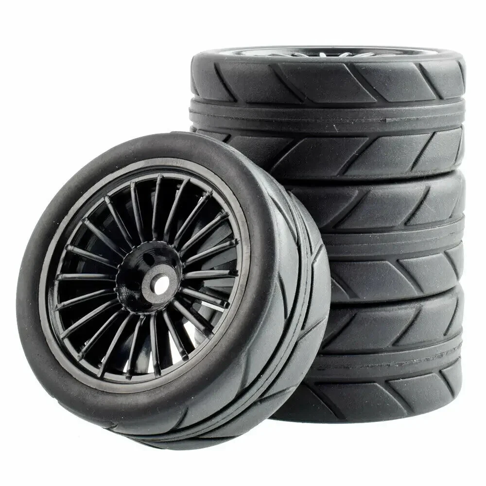 Rc Car Wheels Tires Onroad for Kyosho Fw06 Hpi Nitro 3 Rs4 Sprint Associated Tc4 100% Brand New Plastic Wheel / Rubber Tires Rubber Tires Diameter: 64mm / Width: 26mm Wheel Diameter: 52mm / Width: 26mm Wheel Hex Drive: 12mm 4xWheel and 4xTires Complete, Insert Sponge. NOTICE: The wheels and tires are not glued together and must be glued before use. Please carefully check the tire size before purchase, whether it is the same as your model tire size, and confirm it again before payment, so as not to return the refund, thank you, wish you a happy shopping.