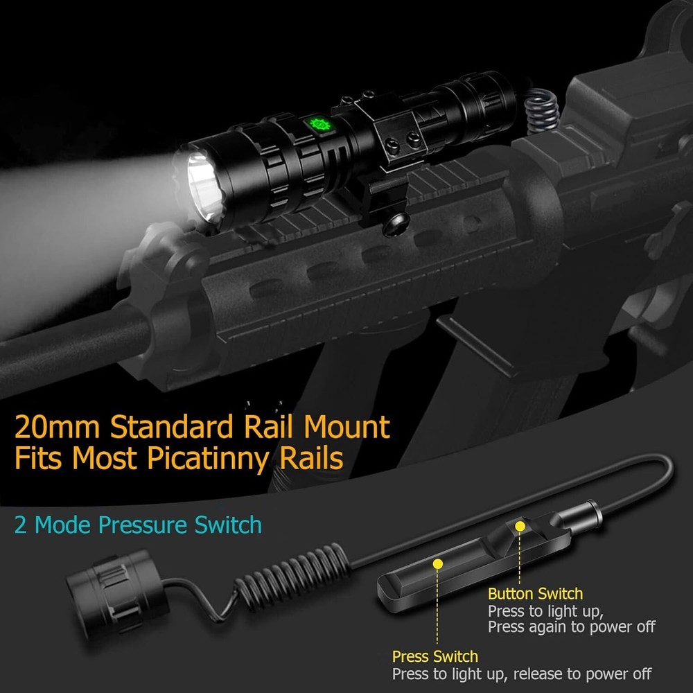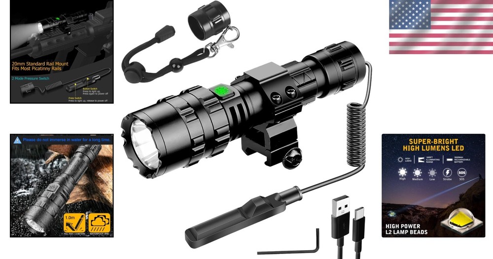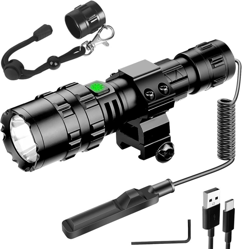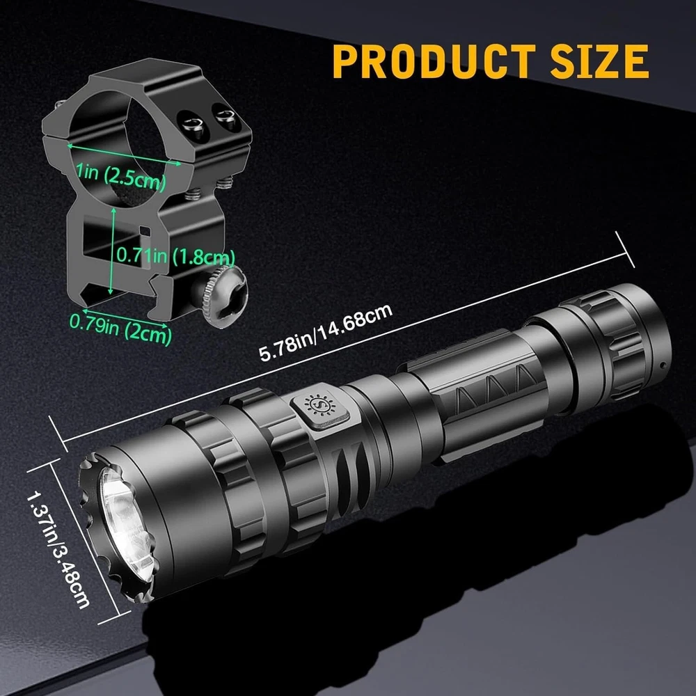 White Brightness: 300 Lumens UPC: Does not apply Brand: Unbranded Type: Flashlight Voltage: 5 volts (dc) Light Path Distance: 1800 Feet Supported Battery Types: High-capacity Lithium-ion Battery Lighting Technology: LED Number of LEDs: 1 Operating Range: 1800 feet Item Dimensions D X W X H: 1.37"d X 0.98"w X 5.78"h Material Type: Aluminum Power Source: Battery Item Weight: 11.99 ounces Lumens: 3000 Battery Technology: Li-Ion Brightness: 300 Lumen Number of Batteries: 1 Finish Types: Matte Color: Black Number of Lights: 1-3 Item Length: Tactical Flashlight Water Resistance Level: Waterproof Light Source Type: Led Style Name: Tactical Product Dimensions: 1.37 X 0.98 X 5.78 Inches; 11.99 Ounces Material: Aluminum, Aircraft-grade aluminum alloy Item Height: Tactical Flashlight IP Rating: IP65 Features: Rechargeable, Waterproof, Batteries Included, Clip On, Handheld, With Wrist Strap Operating Time: More Than 10 Hours gtin13: Does not apply Mount Type: Rifle Mount Battery Type: Lithium Ion Personalize: No