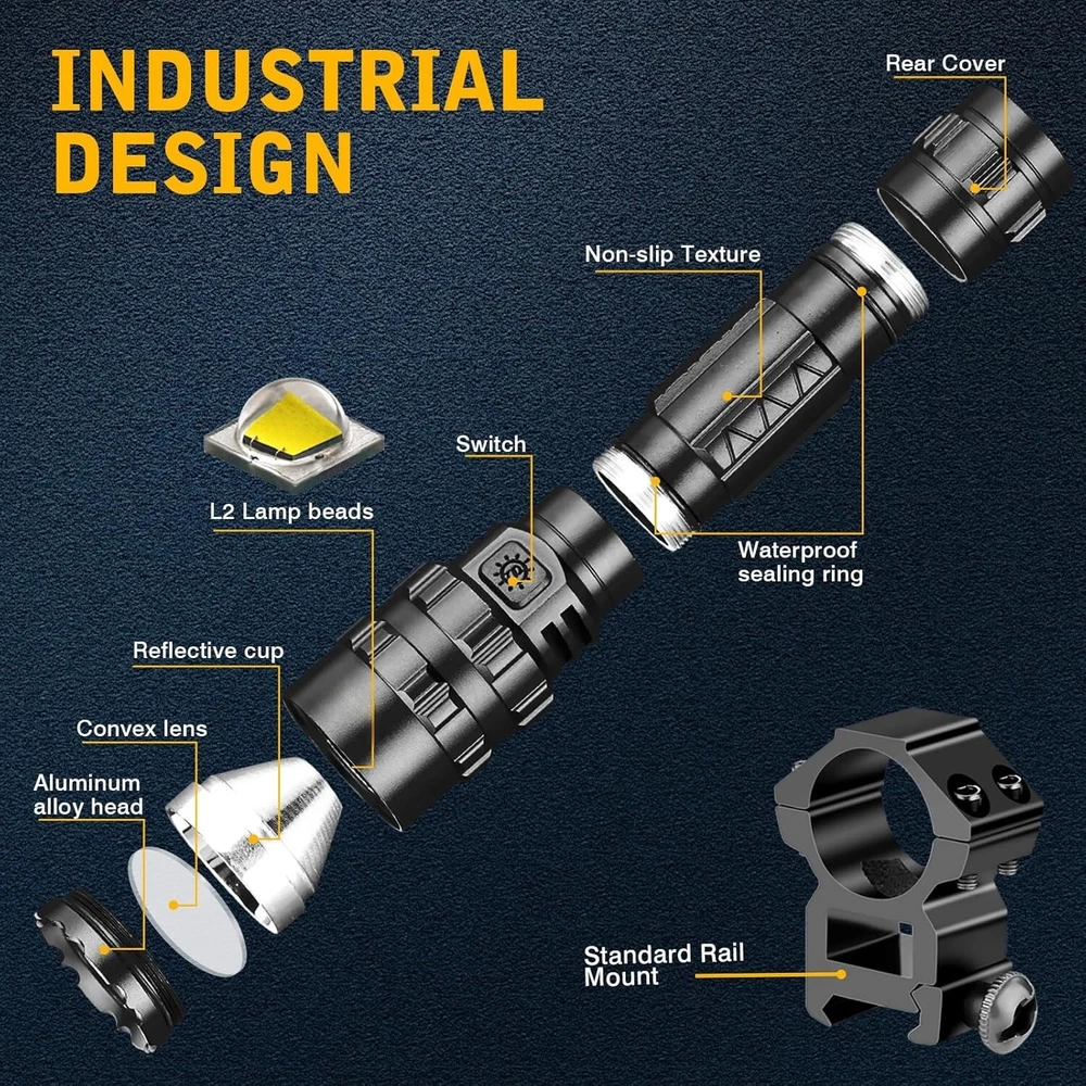 High-Performance 3000 Lumen Picatinny Flashlight Waterproof Lightweight