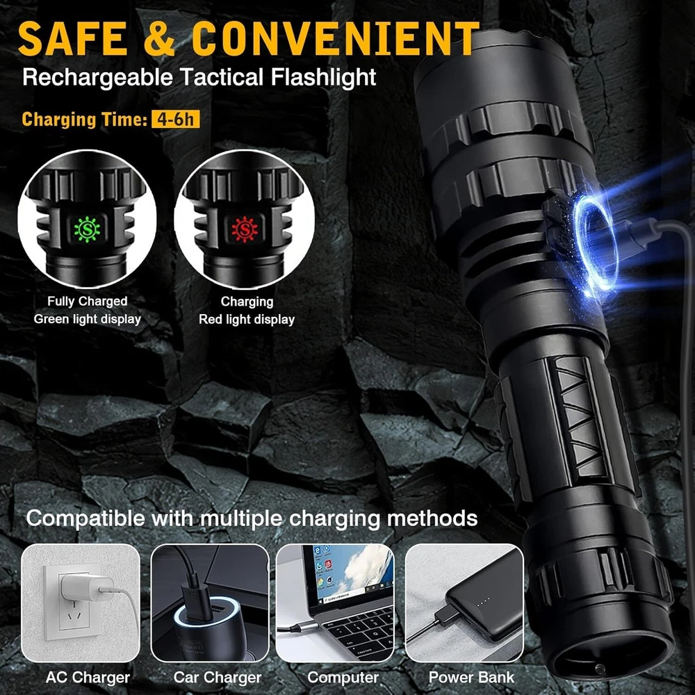 High-Performance Picatinny Flashlight - 3000 Lumens, Waterproof & Lightweight ‹ › ‹ › ‹ › ‹ › ‹ › ‹ › ‹ › ‹ › ‹ › ‹ › High-Performance Picatinny Flashlight Illuminate your surroundings with unmatched brilliance and versatility. Our tactical flashlight features: Powerful Brightness: Equipped with an advanced L2 LED bulb, delivering an extraordinary 3000 lumens of bright white light. Experience unmatched visibility that can illuminate up to 1800 feet, ensuring you see and be seen, even in the darkest conditions. 5 Versatile Lighting Modes: Adapt to any situation with 5 lighting modes—High, Medium, Low, Strobe, and SOS. Customize your illumination based on your needs, whether for tactical scenarios or casual use. Two Convenient Switches: Featuring a dual-tail switch design — one button switch for easy cycling through modes, and a pressure switch for instant illumination. Instant access to light at your fingertips. USB Rechargeable: Stay powered up with a Type-C fast charging port. Recharge conveniently from your computer, power bank, or car charger. The indicator light provides clear charging status, turning green when fully charged. Easy Mounting: Effortlessly attach or detach using the included Picatinny rail mount. It comes with an Allen wrench and screws for seamless installation. Built to Endure: Constructed from aircraft-grade aluminum alloy with a durable anodized matte finish, this flashlight is designed to withstand the toughest conditions. IP65 waterproof rating ensures reliable performance even in heavy rain or snow. Widely Applicable: Perfect for a multitude of activities - from tactical operations, night walking, camping, hiking, to emergency lighting. This flashlight is the ultimate companion in both everyday situations and adventurous excursions. Why Choose Our High-Performance Picatinny Flashlight? When visibility is paramount, this flashlight exceeds expectations with its stunning brightness and robust feature set. The combination of a lightweight design and heavy-duty construction ensures that whether you’re on a night mission or a camping trip, you’ll always have the light you need, when you need it. Your Light, Your Adventure — Order Today! Shipping Free & Fast Shipping - We offer free shipping to most of the USA with a normal delivery time of 3-7 days. However, due to the current situation, additional delivery time (up to 3 weeks) may be required for some items. Alternative Carriers - We may use alternative carriers (e.g. USPS, FedEx, UPS, etc.) to ensure your package arrives safely and on time. Due to the use of multiple carriers, we are unable to provide a tracking number automatically. Handling Time - Orders are processed and shipped within 1-2 business days of receiving cleared payment. Shipping Restrictions - Shipping to Alaska, Hawaii, Puerto Rico, Guam, and other US territories may incur shipping charges or delivery restrictions. Please contact us before ordering, or your order can be refunded/cancelled. State Restrictions - There may be restrictions based on your state of purchase. For example, certain items may not be shipped to California due to state regulations. Contact for Tracking Updates - If you require tracking updates or have any concerns about the delivery of your order, please feel free to contact us, and we will be happy to assist you. Return 30-Day Hassle-Free Returns - We want you to be completely satisfied with your purchase. If you are not, you can return the item within 30 days of receiving it for a full refund or exchange. Easy Return Process - To start a return, simply contact us and we will provide you with a prepaid return shipping label and detailed instructions. Restocking Fee - There are no restocking fees for returns. However, the buyer is responsible for return shipping costs if the return is not due to a seller's error. Refund Processing Time - Refunds will be processed within 5 business days of receiving the returned item in its original condition. Payment We accept all major credit cards, PayPal, and Apple Pay for your convenience. Your payment information is secure and encrypted to ensure a safe and seamless transaction. Please complete your payment within 3 days of purchase to avoid any delays in shipping. Feedback Your feedback is extremely important to us. We strive to provide the best products and customer service possible. If you are satisfied with your purchase, please take a moment to leave us a positive review. If you have any concerns or issues with your order, please contact us before leaving negative feedback. We are committed to resolving any problems and ensuring your satisfaction. Contact Us If you have any questions or concerns, please feel free to reach out to our customer support team. You can contact us through the eBay messaging system. We are available Monday to Friday, 9:00 am to 5:00 pm EST, and we will do our best to respond to your inquiry within 24 hours. Thank you for supporting our small family business! UPC: Not Set Voltage: 5 volts (dc) Item Height: Tactical Flashlight Item Length: Tactical Flashlight Item Weight: 11.99 ounces Item Width: Not Set Model: Not Set Lumens: 3000 Number of LEDs: 1 Unit Quantity: 1 Features: Batteries Included,Clip On,Handheld,Rechargeable,Waterproof,With Wrist Strap Material: Aluminum,Aircraft-grade aluminum alloy Brand: Unbranded Type: Flashlight Lighting Technology: LED Power Source: Battery Operating Range: 1800 feet MPN: Not Set Battery Technology: Li-Ion Number of Batteries: 1 Color: Black Country/Region of Manufacture: Not Set IP Rating: IP65 Operating Time: More Than 10 Hours Number of Lights: 1-3 Unit Type: oz Personalize: Not Set