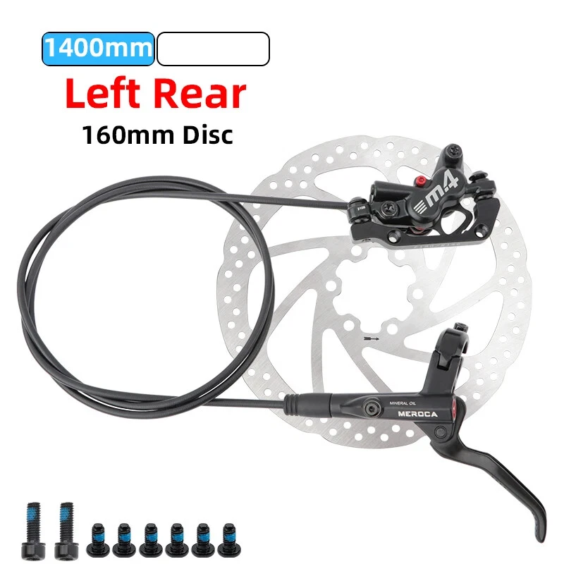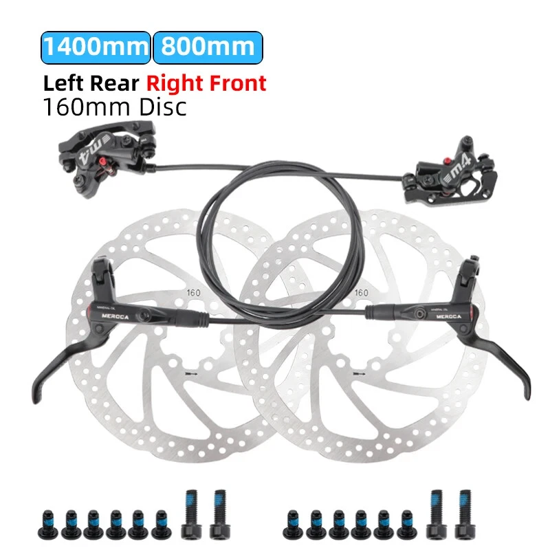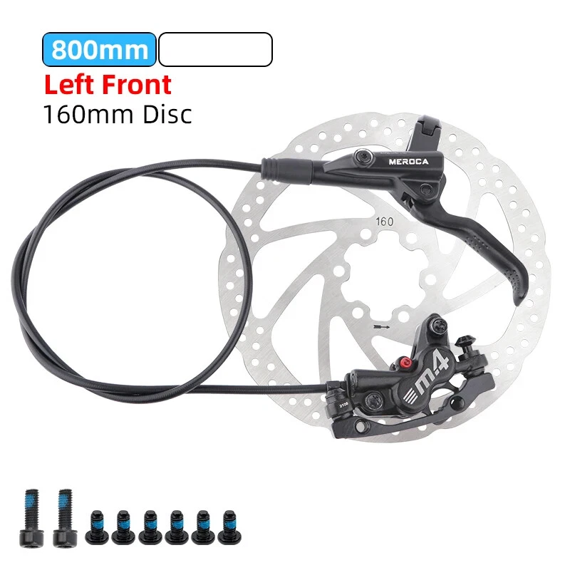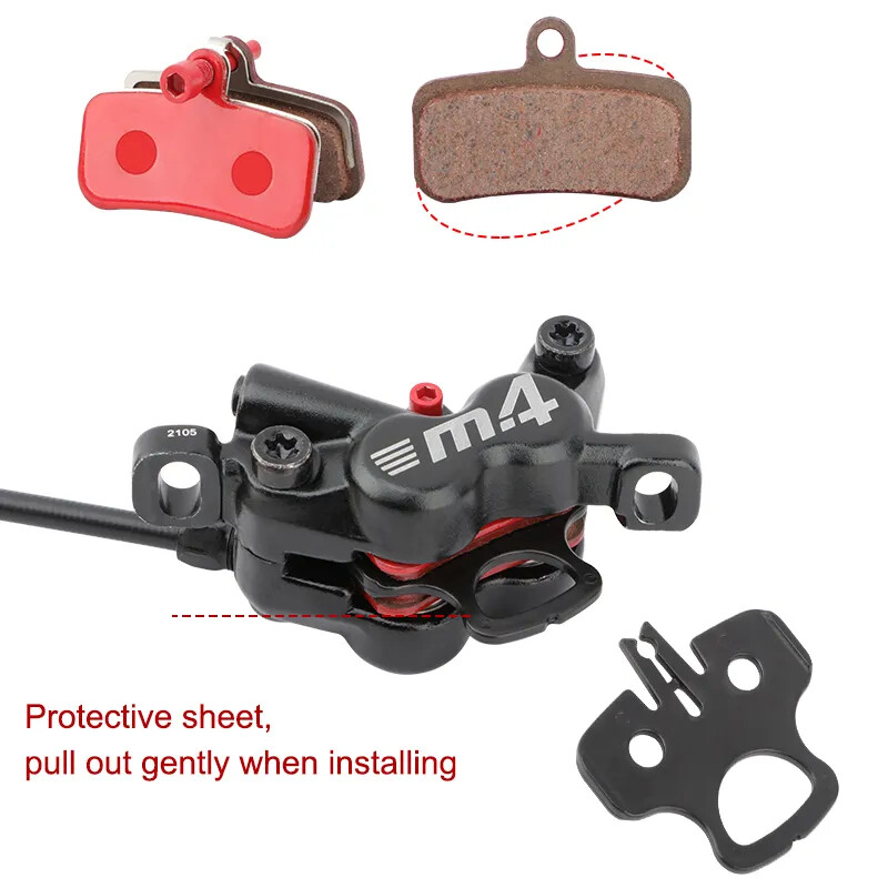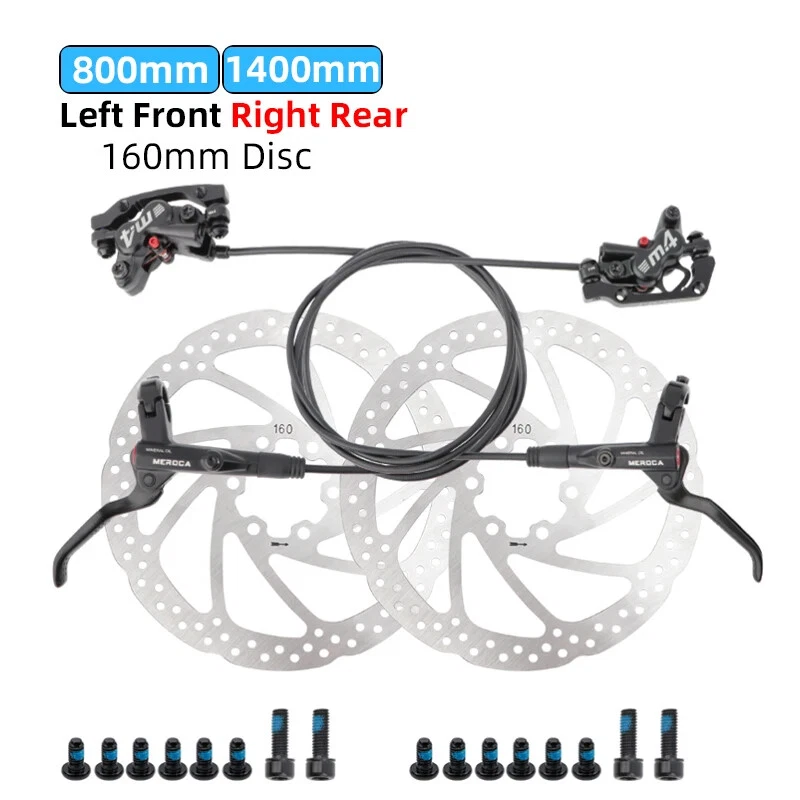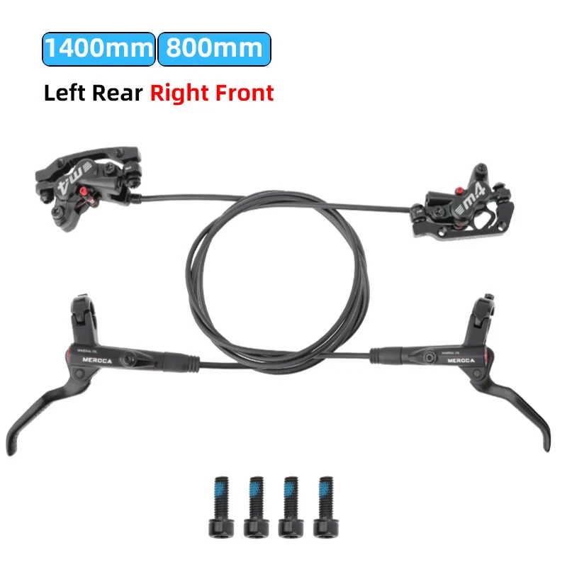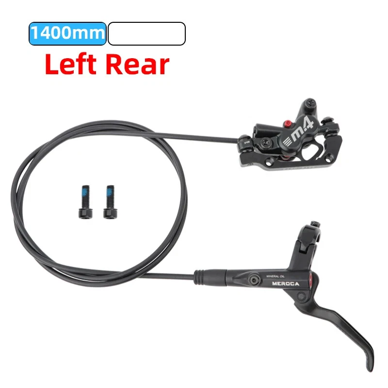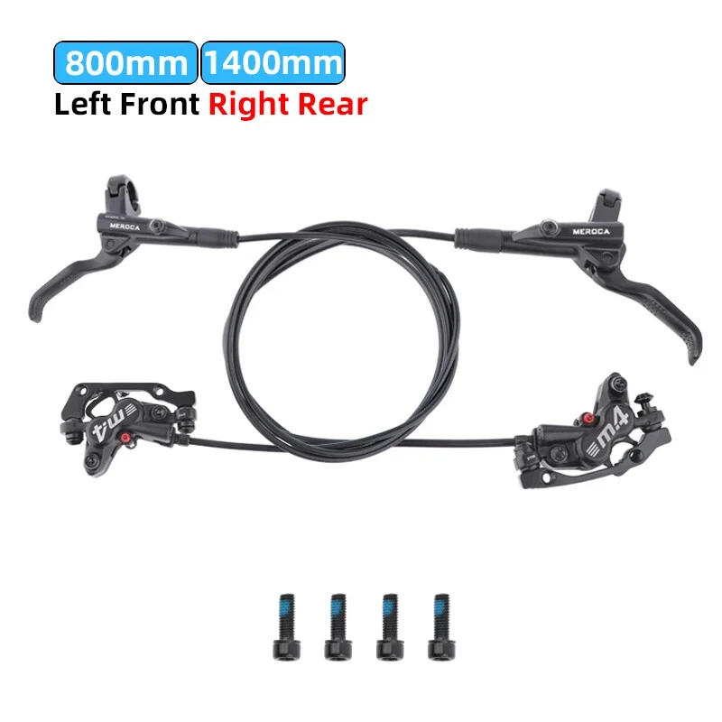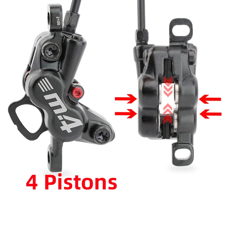 Name: Four-piston hydraulic disc brake Model: M4 Color: Black Material: aluminum alloy Weight: 1 pair about 647g Oil pipe: 800mm front, 1400mm rear brake About the model: LRRF:Left Rear Right Front brake LFRR: Left Front Right Rear brake Note:There are two specifications of bicycle brakes, and the simple way to distinguish them is: The left hand brake lever controls the rear brake, please select the left rear right front brake. The left hand brake lever controls the front brake, please select the left front and right rear brakes.