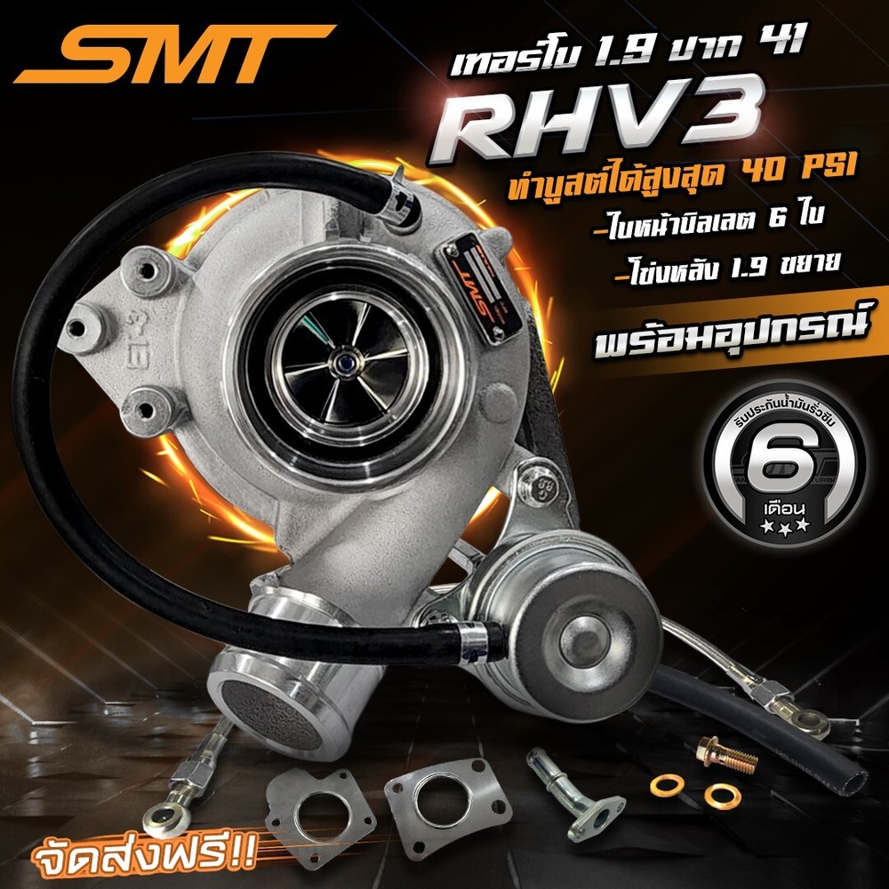 Turbocharger SMT RHV3 Billet Blades for ISUZU ALL NEW DMAX 1.9 model Inlet 41 mm, 11 blades, blade size 41-41 Full Kit Features: - The front and rear housings are designed for excellent response without waiting for the RPM - Focused on low-to-mid RPM range usage - Front cover 1.9 with 6 billet blades - Rear housing 1.9, expanded - Modified 04 core (bushing – anti-race support, suitable for high boost) - Supports maximum boost of 50 psi (For durability, it is recommended to use a boost of no more than 40 psi) - Suitable for remapped vehicles, ECU tuning, or upgraded injectors - Increases durability in the boost system - Provides noticeable engine power increase Warranty: Oil leak warranty for 6 months The turbo is not covered under warranty if it uses old engine oil or non-100% synthetic oil. Buyer pays return shipping To comply with warranty terms and ensure long service life, it is recommended to use a boost of no more than 40 PSI. Items Included in the Box (Full Kit): 1 unit of Turbocharger SMT RHV3 Billet Blades for ISUZU ALL NEW DMAX 1.9 1 piece of wastegate (attached to the turbo) 1 oil line 1 set of Hollow screw Turbocharger Oil inlet 1 set of oil return flange 1 set of gaskets Installation Requirements: Oil supply line for the shaft Oil return pipe Return line M10x1.5 bolts Customers can order additional parts from our store or inquire via chat with our admin. If you are installing it yourself and do so correctly, after installation, some old oil may come out of the turbo. This is considered normal as the turbo contains oil used to lubricate the turbocharger. However, if after using it for a while, the back housing turns brown and there is still oil leakage, it is abnormal. In this case, customers can send the product back for a warranty claim. ➤ Before unpacking the product, please record an unedited video of the unboxing process (one continuous video) and check the product. If the product is damaged due to user handling, we reserve the right to refuse any responsibility.