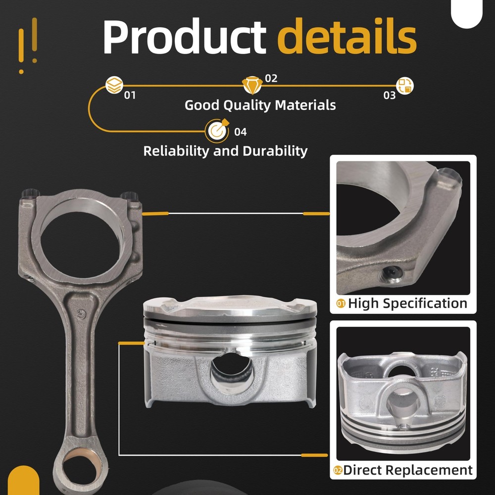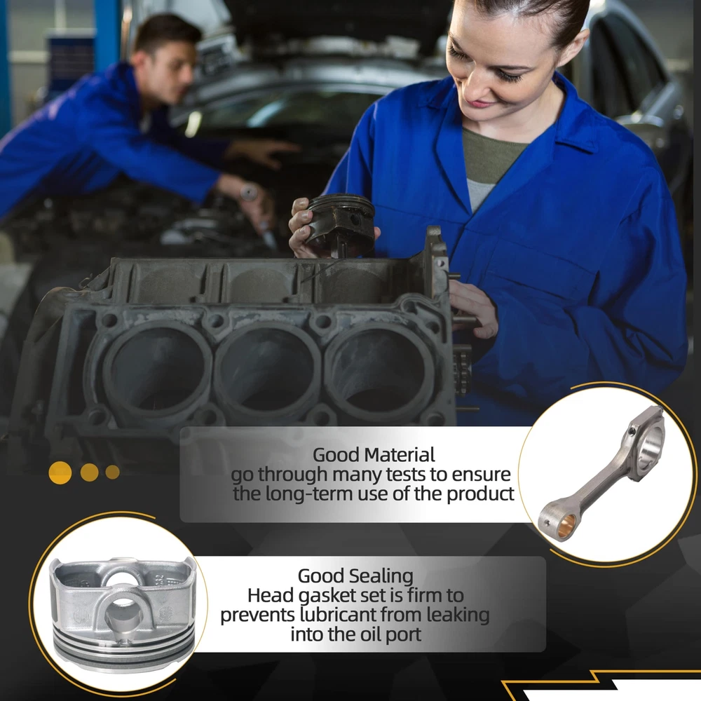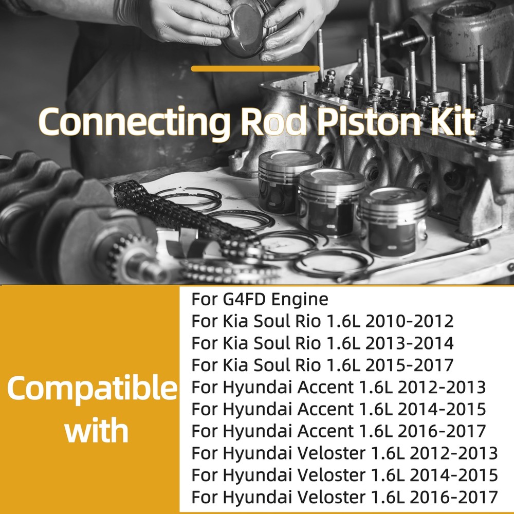 Engine Parts Installation Guide About Us Contact Us Feedback Dynepro® Pro Series Master Engine Rebuild Kit For Hyundai OEM Spec Certified Engine Repair Kit Precision Engineered · Factory Reliability ⭕Aluminum Piston Set Hypereutectic Al-Si18 Alloy : Low thermal expansion, 20% lighter than cast iron. Molybdenum-coated skirts : Reduces cylinder wear by 35% in stop-and-go city driving. Integrated cooling channels : Optimized for turbocharged Gamma/Theta II engines,lifespan by 2x. ⭕ Built For Hyundai Owners: ✔️ Oil sludge cleanup (Theta II/Lambda engine rebuilds) ✔️ Timing chain rattle fixes (Nu/Gamma engines, includes tensioner tool) ✔️ Turbo failure prevention (1.6T/2.0T models, full gasket/seal refresh) ✔️ 200,000km+ overhauls (full bolt kit with factory torque specs) ⭕ For Hyundai TechTrust : ✔️ Restore factory power. Drive with Korean precision. ✔️Order Now – Free OEM Repair Manual Included! Support: Email us (Master Techs on call) ⭕ Why Genuine? ⚠️ Cheap parts fail: Non-genuine pistons crack under GDI’s 150-bar fuel pressure. Knockoff chains stretch, causing valve-piston interference. ✅ for Hyundai spec Certified : 100% material compliance with Hyundai MS-350 durability standards. Direct from OEM Plant spec suppliers. 5-year unlimited-mileage warranty. Vehicle Application Compatible with: G4FD 1.6L engines. for Hyundai Accent 2012-2018 1.6L GAS Naturally Aspirated for Hyundai Veloster 2012-2017 1.6L GAS Naturally Aspirated for Hyundai Veloster 2013-2017 1.6L GAS Turbocharged for Kia Rio 2013-2017 1.6L GAS Naturally Aspirated for Kia Soul 2011-2018 1.6L GAS Naturally Aspirated for Kia Soul 2017-2018 1.6L GAS Turbocharged Note: VIN confirmation required. What's included in this complete bundle set 4x Connecting Rod 4x Engine Piston 4x Engine Piston Pin 1x Set of Engine Piston Ring Shop Now >> Instant Fitment Email your Hyundai model (e.g., Elantra, Tucson, Santa Fe) and year → Get a repair kit tailored to your VIN. Restore factory power, drive like new. Tech Support: Email us (Provide VIN for tailored parts list) Learn More Learn More Learn More PAYMENT We accept eBay managed payments for all orders. If you have any questions, please contact us. SHIPPING Ordering this kit requires additional information: the vehicle engine model as well as the VIN (17 digits), and also requires you to verify a match to your vehicle using the vehicle application data on Ebay. Be sure to provide this information when placing your order or via a separate message. Product will be shipped within 1-3 business days after full payment is received and verified. Delivery Time is about 3-7 business days to most of countries. We ship the package to your shipping address in eBay instead of the one in PayPal. Please tell us your shipping address if it is different from the one in eBay. RETURNS We offer eBay's best return policy. If you utilized Ebay's fitment and the parts you received do not fit your vehicle, we will pay to have them returned. Should you desire to return this kit for any other reason, Includes kits that are incorrect because you did not provide the VIN in the order notes, you will be responsible for return shipping. These kits are heavier and cost more to ship, so we ask that you provide vehicle information and verify suitability before ordering.Unfortunately, we cannot accept returns from international customers at this time. ★★★★★ So far the engine overhaul kit has performed well. I love the performance with this kit installed. On my 2004 F150. Installation was easy. Everything is perfect. Considering this kit is cheap, it doesn't get any better than this. ----James ★★★★★ This was a great price. lt was made in the USA. After 10,000 miles it is running great. ----Liam ★★★★★ As of the time of this review this is well worth the money and it fits as it should. ----Noah ★★★★★ This set was installed perfect fit. lt has been installed on a truck that has been used very much every day. Working perfect and so much cheaper than the auto stores. ----Ethan ★★★★★ Seemed to be a perfect replacement part and it works. ----Oliver ★★★★★ Everything fit how it was supposed to and have been driving it for a week with no problems. ----Benjamin ★★★★★ The seller was very nice and provided me with professional advice on the installation, which was a breeze and is still going strong after 10,000 miles. ----Michael
