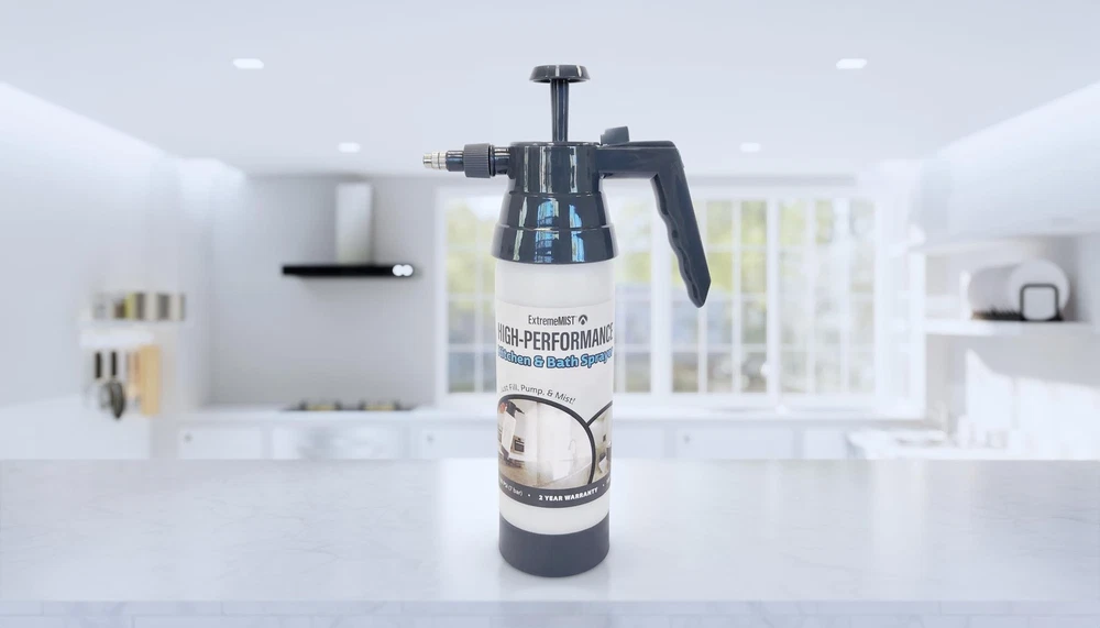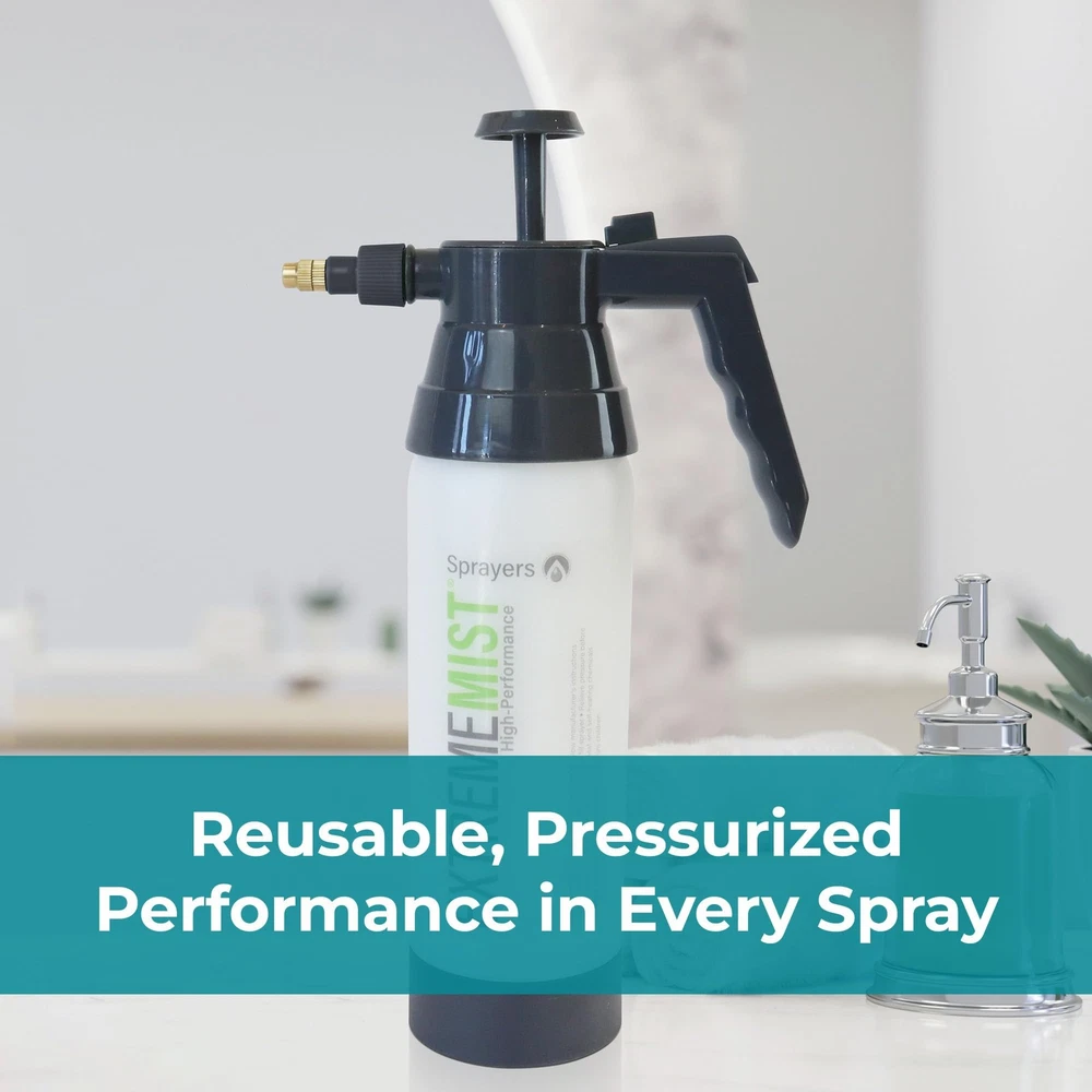 Introducing the High-Performance Kitchen & Bath Sprayer You already know buying those cleaning liquids in bulk saves you money, and helps reduce waste. But most traditional cleaning sprayers you fill with these products are made with flimsy, low-quality nozzles and triggers. Now you can buy your cleaning products in bulk and use them with our high quality and robust pump-up sprayer. Crafted with an adjustable nozzle, you can choose between an ultra-fine mist, a strong jet stream, or anything in between. With just 8-12 pumps, our High-Performance Kitchen & Bath Sprayer delivers an ultra-fine mist or spray, making cleaning faster, easier, and more enjoyable. Simply buy your cleaners in bulk, fill, pump, and mist! Designed for anyone who loves a clean space, whether you’re a homemaker, restaurant owner, or teacher, this sprayer works with most water-solvent cleaning products. It’s perfect for dusting, cleaning, glass, window washing, and more. Built to last with high-grade silicone o-rings, the sprayer is graded for up to 100 PSI pressure. Available in both 20 oz and 32 oz sizes, it’s your go-to cleaning tool for keeping your home spotless. Countless Uses: Spray down kitchen counters Clean bathroom sinks Spray down shower tiles and grout Clean windows and mirrors Spray down kitchen table and dining table Sanitize gym equipment Wash pet crates Clean refrigerator, microwave, and toaster oven Wash granite or marble countertops Spray down classroom desks REUSABLE & DURABLE – Upgrade from flimsy sprayers to our long-lasting high-performance pump sprayer. It works with most of your regular household cleaning products, allowing you to buy in bulk, reduce waste, and save money. HIGH-PERFORMANCE SPRAYER – This handheld mister spray bottle is perfect for cleaning, disinfecting, dusting and washing. It works on all surfaces, appliances, and glass, with mist, spray, and stream settings for any cleaning task. PRESSURIZED CONTINUOUS SPRAY BOTTLE – Pump it 8 to 12 times for a high-pressure mist or a jet stream, and everything in between. The trigger lock allows continuous spraying, making cleaning faster and easier. ADJUSTABLE NOZZLE – Twist the nozzle to switch between an ultra-fine mist, a strong jet stream, or any setting in between. It's graded for up to 100 PSI, perfect for various cleaning needs. EASY TO USE – Simply fill the cleaning spray bottle with your favorite household cleaner, pump it to pressurize, and press the trigger to release a continuous spray or mist. Use It for cleaning your shower, sink, kitchen island, glass windows, counters, bathrooms, living rooms, playrooms and more. NOTE: Each one is factory tested with water to ensure pressurization, and some moisture may remain in the sprayer when it is newly purchased.