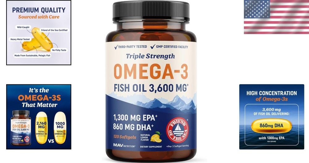 Omega 3 Fish Oil Supplements 3600mg with 1300mg EPA & 860mg DHA - 40 Day Supply ‹ › ‹ › ‹ › ‹ › ‹ › ‹ › ‹ › ‹ › ‹ › ‹ › ‹ › Omega 3 Fish Oil Supplements 3600mg with 1300mg EPA & 860mg DHA - 40 Day Supply Key Features: Fish Oil Triple Strength: Each serving provides an incredible 3600mg of total fish oil, ensuring ultimate support for a healthy life.* Ultra-Refined Omega-3: Our fish oil pills undergo molecular distillation for maximum potency while effectively removing mercury, heavy metals, PCB's, and other toxins. Sustainable & Wild-Caught: Sourced from clean, wild-caught fish from Friend of the Sea certified sustainable fisheries, ensuring an environmentally friendly product. No Fishy Aftertaste: Enjoy concentrated, , burpless citrus-flavored softgels that provide clean fish oil without any unpleasant aftertaste. The Benefits Await You: Supports healthy eyes, brain function, and immune system, promoting overall wellness.* Provides a significant dose of EPA and DHA essential fatty acids for heart health and cognitive function.* Delivers sustainability alongside potency, with environmental responsibility in mind. Perfect for those who dislike the typical fishy taste of fish oil, with easy to swallow, lightly flavored softgels. Why Choose Our Omega 3 Fish Oil Supplements? Elevate your health regimen with our Omega 3 Fish Oil Supplements, meticulously crafted for superior strength and purity. With a powerful 3600mg per serving, you can trust the scientifically-backed benefits for your eyes, brain, and immune system.* The ultra-refined formula is sourced responsibly, bringing you peace of mind while enhancing your health. Make an informed choice for your wellness – choose our Omega 3 Fish Oil Supplements and enjoy a life filled with vitality and energy. Order now to begin your journey towards optimal health! Shipping Free & Fast Shipping - We offer free shipping to most of the USA with a normal delivery time of 3-7 days. However, due to the current situation, additional delivery time (up to 3 weeks) may be required for some items. Alternative Carriers - We may use alternative carriers (e.g. USPS, FedEx, UPS, etc.) to ensure your package arrives safely and on time. Due to the use of multiple carriers, we are unable to provide a tracking number automatically. Handling Time - Orders are processed and shipped within 1-2 business days of receiving cleared payment. Shipping Restrictions - Shipping to Alaska, Hawaii, Puerto Rico, Guam, and other US territories may incur shipping charges or delivery restrictions. Please contact us before ordering, or your order can be refunded/cancelled. State Restrictions - There may be restrictions based on your state of purchase. For example, certain items may not be shipped to California due to state regulations. Contact for Tracking Updates - If you require tracking updates or have any concerns about the delivery of your order, please feel free to contact us, and we will be happy to assist you. Return 30-Day Hassle-Free Returns - We want you to be completely satisfied with your purchase. If you are not, you can return the item within 30 days of receiving it for a full refund or exchange. Easy Return Process - To start a return, simply contact us and we will provide you with a prepaid return shipping label and detailed instructions. Restocking Fee - There are no restocking fees for returns. However, the buyer is responsible for return shipping costs if the return is not due to a seller's error. Refund Processing Time - Refunds will be processed within 5 business days of receiving the returned item in its condition. Payment We accept all major credit cards, PayPal, and Apple Pay for your convenience. Your payment information is secure and encrypted to ensure a safe and seamless transaction. Please complete your payment within 3 days of purchase to avoid any delays in shipping. Feedback Your feedback is extremely important to us. We strive to provide the best products and customer service possible. If you are satisfied with your purchase, please take a moment to leave us a positive review. If you have any concerns or issues with your order, please contact us before leaving negative feedback. We are committed to resolving any problems and ensuring your satisfaction. Contact Us If you have any questions or concerns, please feel free to out to our customer support team. You can contact us through the eBay messaging system. We are available Monday to Friday, 9:00 am to 5:00 pm EST, and we will do our best to respond to your inquiry within 24 hours. Buy it now and enjoy a pleasant shopping experience! Expiration Date: Omega 3 Fish Oil Supplements Unit Quantity: 120 Active Ingredients: Omega-3,DHA Formulation: Capsule,Softgel Features: Non-GMO,Sustainable,Wild-Caught,Burpless,No Fishy Aftertaste Main Purpose: Brain & Nervous System Health,Eye Health,General Wellness,Immune Support,Antioxidant Ingredients: Fish Oil,DHA,EPA When to Take: After Meal Type: Vitamin Number of Pills: 120 Dosage: 3600 mg Flavor: Lemon Item Weight: 0.01 kilograms