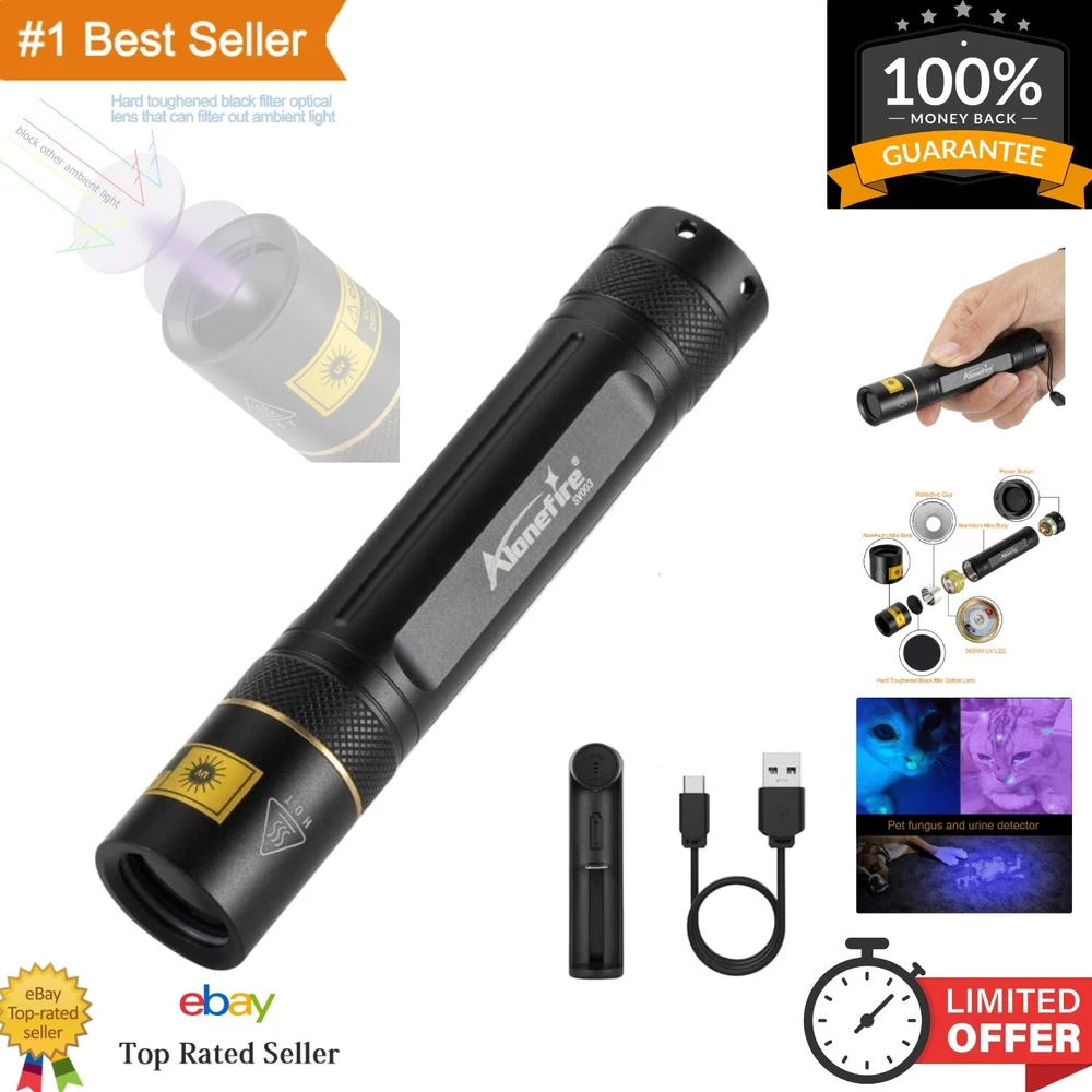 High-Power 365nm UV LED Flashlight - Perfect for Scorpion Hunting & Resin Curing ‹ › ‹ › ‹ › ‹ › ‹ › ‹ › ‹ › ‹ › ‹ › High-Power 365nm UV LED Flashlight Your ultimate companion for scorpion hunting and resin curing, this professional-grade flashlight is designed for the discerning user who values both performance and reliability. Features: Utilizes a high-quality 365NM UV LED source, achieving up to 10W power consumption and 2400mW luminous power. Professional-grade ultraviolet flashlight tailored for expert use. Equipped with a durable hard toughened black filter optical lens, expertly filtering out extraneous environmental light for purer UV illumination. Crafted with high-quality aluminum alloy, enhancing heat dissipation for prolonged reliability and durability. Includes a high-capacity battery paired with a battery charger that features battery indication, along with overheat and overcharge protection for ultimate convenience. Benefits: Exceptional heat dissipation ensures consistent performance during prolonged use. Professionally filters light to provide a clear, powerful UV experience for various applications. Multi-functional: Detects stains invisible to the naked eye, helping you utilize it for cleaning, verification, and hunting. Ideal for detecting counterfeit documents, verifying currency, inspecting amber and jewelry, and identifying pet stains. Convenient charging system keeps you equipped and ready for any challenge. Why choose our High-Power 365nm UV LED Flashlight? In a world where precision and quality matter, settle for nothing less than excellence. This flashlight provides powerful illumination tailored for both professional and hobbyist needs. With its robust design, superior heat management, and exceptional clarity, it is a reliable partner for scorpion hunting or resin curing, detecting the invisible and making your tasks easier. Elevate your craft and ensure you’re always prepared for the task at hand. Invest in the High-Power 365nm UV LED Flashlight today – where performance meets perfection. Shipping Free & Fast Shipping - We offer free shipping to most of the USA with a normal delivery time of 3-7 days. However, due to the current situation, additional delivery time (up to 3 weeks) may be required for some items. Alternative Carriers - We may use alternative carriers (e.g. USPS, FedEx, UPS, etc.) to ensure your package arrives safely and on time. Due to the use of multiple carriers, we are unable to provide a tracking number automatically. Handling Time - Orders are processed and shipped within 1-2 business days of receiving cleared payment. Shipping Restrictions - Shipping to Alaska, Hawaii, Puerto Rico, Guam, and other US territories may incur shipping charges or delivery restrictions. Please contact us before ordering, or your order can be refunded/cancelled. State Restrictions - There may be restrictions based on your state of purchase. For example, certain items may not be shipped to California due to state regulations. Contact for Tracking Updates - If you require tracking updates or have any concerns about the delivery of your order, please feel free to contact us, and we will be happy to assist you. Return 30-Day Hassle-Free Returns - We want you to be completely satisfied with your purchase. If you are not, you can return the item within 30 days of receiving it for a full refund or exchange. Easy Return Process - To start a return, simply contact us and we will provide you with a prepaid return shipping label and detailed instructions. Restocking Fee - There are no restocking fees for returns. However, the buyer is responsible for return shipping costs if the return is not due to a seller's error. Refund Processing Time - Refunds will be processed within 5 business days of receiving the returned item in its original condition. Payment We accept all major credit cards, PayPal, and Apple Pay for your convenience. Your payment information is secure and encrypted to ensure a safe and seamless transaction. Please complete your payment within 3 days of purchase to avoid any delays in shipping. Feedback Your feedback is extremely important to us. We strive to provide the best products and customer service possible. If you are satisfied with your purchase, please take a moment to leave us a positive review. If you have any concerns or issues with your order, please contact us before leaving negative feedback. We are committed to resolving any problems and ensuring your satisfaction. Contact Us If you have any questions or concerns, please feel free to reach out to our customer support team. You can contact us through the eBay messaging system. We are available Monday to Friday, 9:00 am to 5:00 pm EST, and we will do our best to respond to your inquiry within 24 hours. Thank you for supporting our small family business! UPC: Not Set Voltage: 5 volts Item Height: UV Flashlight Item Length: UV Flashlight Item Weight: 1.9 ounces Item Width: Not Set Model: Not Set Lumens: 2400 Number of LEDs: 1 Unit Quantity: 1 Features: Rechargeable,Portable,High Power,Overheat Protection,Overcharge Protection Material: Aluminum,Resin Brand: Unbranded Type: Flashlight Lighting Technology: LED Power Source: Battery Operating Range: 10 m MPN: Not Set Battery Technology: Li-Ion Number of Batteries: 1 Color: Black Country/Region of Manufacture: Not Set IP Rating: IP20 Operating Time: More Than 10 Hours Number of Lights: 1-3 Unit Type: oz Personalize: Not Set