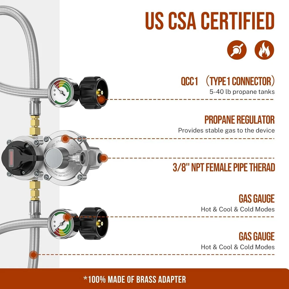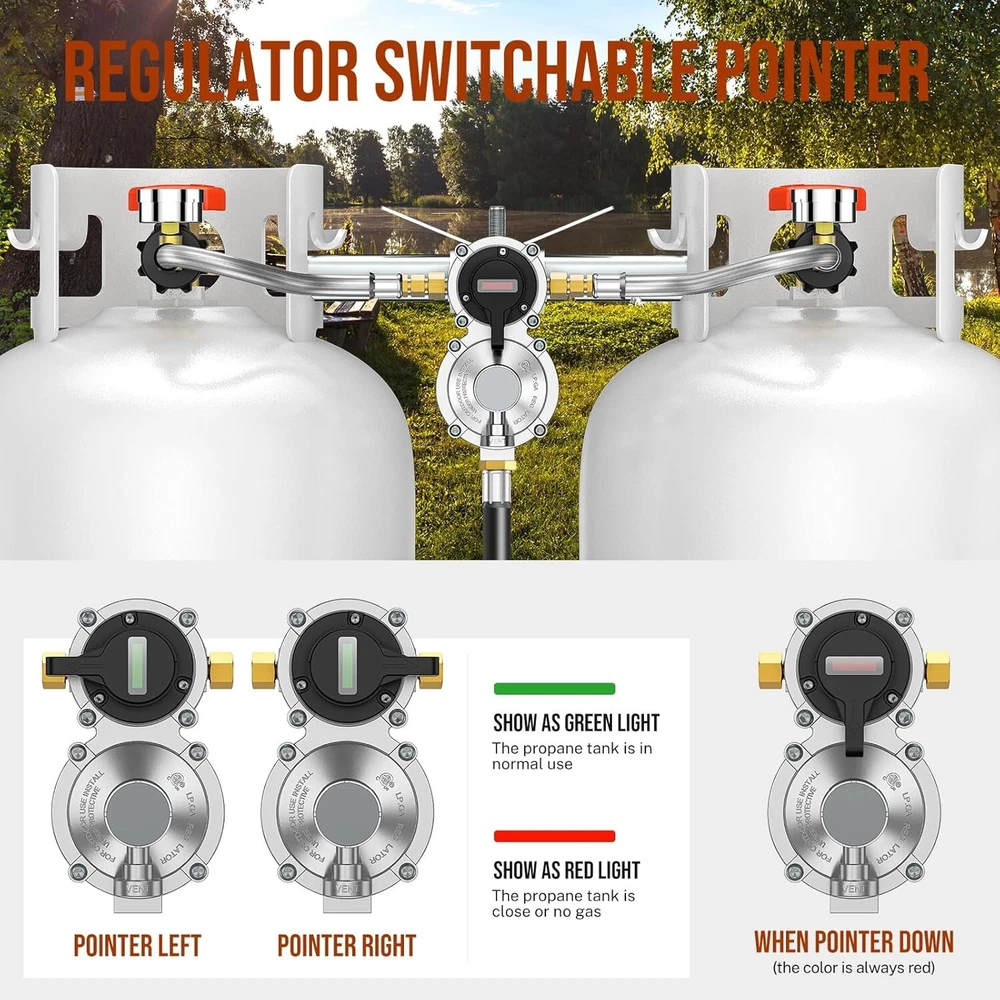 High-Quality 2-Stage Propane Regulator with Dual 18-Inch Pigtail Hoses & Gauge ‹ › ‹ › ‹ › ‹ › ‹ › ‹ › ‹ › ‹ › ‹ › High-Quality 2-Stage Propane Regulator Complete with Dual 18-Inch Pigtail Hoses & Gauge Key Features: Innovative Functionality: Effortlessly connect two propane tanks simultaneously. Automatic Switch: The regulator seamlessly transitions from the primary to the reserve tank when gas is depleted, ensuring uninterrupted service. Color-Coded Indicator: The rotary pointer lets you designate which tank is in use, with a color-changing gauge to signal when a refill is needed. Durability You Can Trust: Superior Materials: Crafted from 100% solid brass and stainless steel braided material for unmatched durability and longevity. CSA Certified: All fittings meet top safety standards, assuring you a secure connection. Specifications: Primary Cylinder Capacity: 210,000 BTU/hr Reserve Cylinder Capacity: 130,000 BTU/hr Inlet: 1/4" SAE Inverted Flare Outlet: 3/8" Female NPT Pigtail Hose: 1/4" Male Inverted Flare with QCC1 Fitting Versatile Applications: Ideal for RVs, campers, and travel trailers with dual propane tank systems. Compatible with 5-40 lb refillable propane tanks or LP gas tanks. Replace any existing automatic changeover regulator in your RV or camper systems to maintain constant gas flow. Packaging Includes: 1 x 2 Stage Auto Changeover RV Propane Regulator 2 x 18'' Stainless Braided QCC1 1/4" Inverted Male Flare RV Pigtail Propane Hoses with Gauge 1 x Roll Sealing Tape 1 x Wrench Customer Satisfaction Guarantee: Enjoy peace of mind with a 2-year satisfaction guarantee. If you are not completely satisfied with your purchase, contact us for a free replacement or refund. Our dedicated customer service team is available within 24 hours to assist with any inquiries. Shipping Free & Fast Shipping - We offer free shipping to most of the USA with a normal delivery time of 3-7 days. However, due to the current situation, additional delivery time (up to 3 weeks) may be required for some items. Alternative Carriers - We may use alternative carriers (e.g. USPS, FedEx, UPS, etc.) to ensure your package arrives safely and on time. Due to the use of multiple carriers, we are unable to provide a tracking number automatically. Handling Time - Orders are processed and shipped within 1-2 business days of receiving cleared payment. Shipping Restrictions - Shipping to Alaska, Hawaii, Puerto Rico, Guam, and other US territories may incur shipping charges or delivery restrictions. Please contact us before ordering, or your order can be refunded/cancelled. State Restrictions - There may be restrictions based on your state of purchase. For example, certain items may not be shipped to California due to state regulations. Contact for Tracking Updates - If you require tracking updates or have any concerns about the delivery of your order, please feel free to contact us, and we will be happy to assist you. Return 30-Day Hassle-Free Returns - We want you to be completely satisfied with your purchase. If you are not, you can return the item within 30 days of receiving it for a full refund or exchange. Easy Return Process - To start a return, simply contact us and we will provide you with a prepaid return shipping label and detailed instructions. Restocking Fee - There are no restocking fees for returns. However, the buyer is responsible for return shipping costs if the return is not due to a seller's error. Refund Processing Time - Refunds will be processed within 5 business days of receiving the returned item in its original condition. Payment We accept all major credit cards, PayPal, and Apple Pay for your convenience. Your payment information is secure and encrypted to ensure a safe and seamless transaction. Please complete your payment within 3 days of purchase to avoid any delays in shipping. Feedback Your feedback is extremely important to us. We strive to provide the best products and customer service possible. If you are satisfied with your purchase, please take a moment to leave us a positive review. If you have any concerns or issues with your order, please contact us before leaving negative feedback. We are committed to resolving any problems and ensuring your satisfaction. Contact Us If you have any questions or concerns, please feel free to reach out to our customer support team. You can contact us through the eBay messaging system. We are available Monday to Friday, 9:00 am to 5:00 pm EST, and we will do our best to respond to your inquiry within 24 hours. Thank you for supporting our small family business! Manufacturer Part Number: RV Propane Regulator and Hose UPC: Not Set MPN: Not Set Unit Quantity: 2 Brand: Unbranded Part Type: Accessories Country/Region of Manufacture: Not Set Warranty: 2 Year Unit Type: lb
