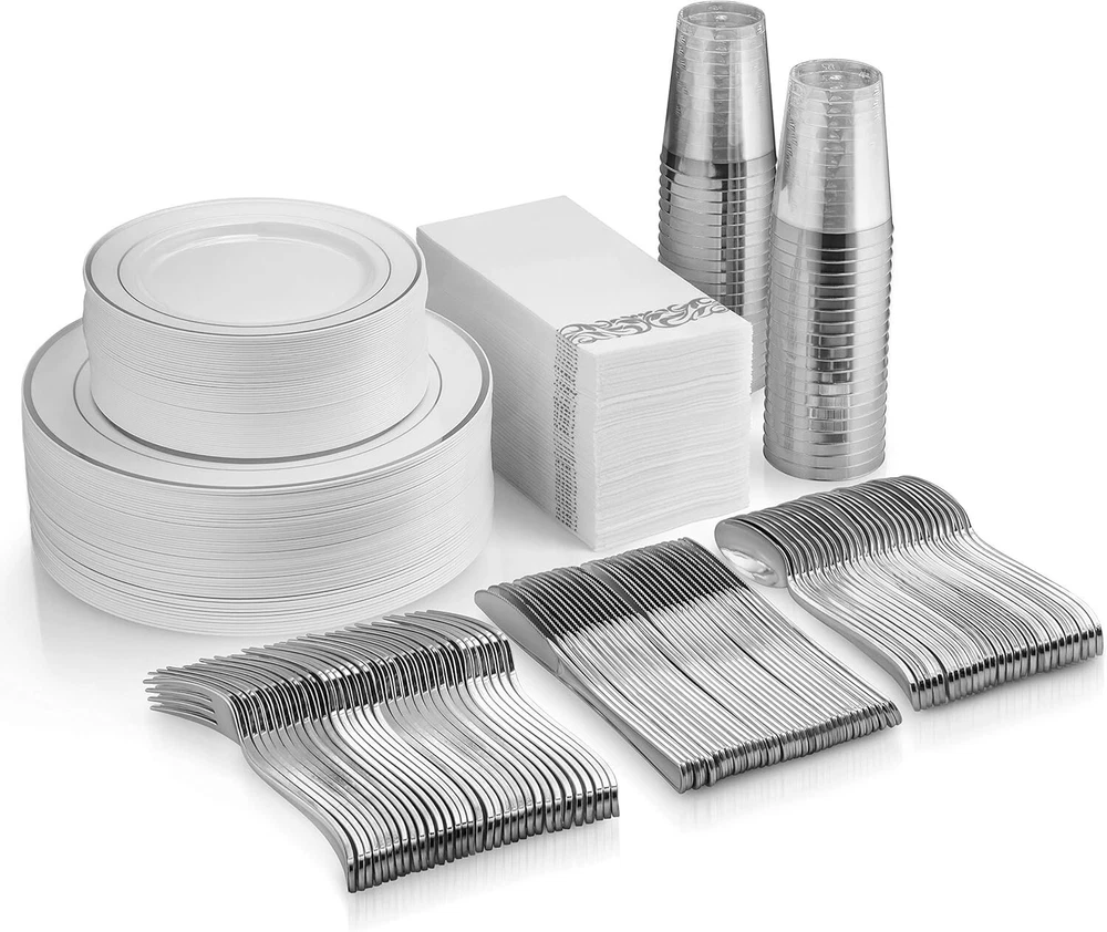 High-Quality 350 Piece Disposable Dinnerware - Silver Plates, Cups & Silverware ‹ › ‹ › ‹ › ‹ › ‹ › ‹ › ‹ › ‹ › ‹ › High-Quality 350 Piece Disposable Dinnerware Elevate your gatherings with this exquisite set of disposable dinnerware, featuring elegant silver plates, cups, and silverware, designed to impress and indulge your guests. Perfect for everything from weddings to casual picnics, this collection is the epitome of sophistication and convenience. What’s Included: 50 Premium Heavy Duty 10.25" Dinner Plates 50 7.5" Salad, Dessert & Appetizer Plates 50 Count 10 Oz Clear Fancy Disposable Silver Rimmed Plastic Party Cups 50 Soft and Absorbent Disposable Linen-Feel Paper Hand Towels Disposable Plastic Silverware Set: 50 Plastic Forks, 50 Plastic Spoons, 50 Plastic Knives Features: Premium quality disposable dinnerware, ensuring both elegance and convenience. Made from durable 100% food grade BPA free, non-toxic heavy duty plastic. Bulk pack of 350 pieces seamlessly accommodates up to 50 guests. Sophisticated silver rim design adds a touch of elegance to any occasion. Benefits: Time-saving: No need for clean-up; simply toss the dinnerware when you’re done. Perfect for a wide array of events: Ideal for weddings, receptions, birthdays, holidays, picnics, catered events, and more. Soft linen-feel hand towels add a touch of luxury and comfort. The combination of quality and elegance ensures that your events will impress your guests. Why Choose Our 350 Piece Disposable Dinnerware Set? If you’re looking for a way to elevate your dining experience without the hassle of traditional clean-up, this high-quality disposable dinnerware set is your answer. Offer your guests an exquisite dining experience that is both practical and stylish. Each piece is crafted for durability, ensuring your special occasions are as memorable as they are effortless. Don’t compromise on elegance—choose our 350 Piece Disposable Dinnerware Set for your next event and make every occasion extraordinary! Shipping Free & Fast Shipping - We offer free shipping to most of the USA with a normal delivery time of 3-7 days. However, due to the current situation, additional delivery time (up to 3 weeks) may be required for some items. Alternative Carriers - We may use alternative carriers (e.g. USPS, FedEx, UPS, etc.) to ensure your package arrives safely and on time. Due to the use of multiple carriers, we are unable to provide a tracking number automatically. Handling Time - Orders are processed and shipped within 1-2 business days of receiving cleared payment. Shipping Restrictions - Shipping to Alaska, Hawaii, Puerto Rico, Guam, and other US territories may incur shipping charges or delivery restrictions. Please contact us before ordering, or your order can be refunded/cancelled. State Restrictions - There may be restrictions based on your state of purchase. For example, certain items may not be shipped to California due to state regulations. Contact for Tracking Updates - If you require tracking updates or have any concerns about the delivery of your order, please feel free to contact us, and we will be happy to assist you. Return 30-Day Hassle-Free Returns - We want you to be completely satisfied with your purchase. If you are not, you can return the item within 30 days of receiving it for a full refund or exchange. Easy Return Process - To start a return, simply contact us and we will provide you with a prepaid return shipping label and detailed instructions. Restocking Fee - There are no restocking fees for returns. However, the buyer is responsible for return shipping costs if the return is not due to a seller's error. Refund Processing Time - Refunds will be processed within 5 business days of receiving the returned item in its original condition. Payment We accept all major credit cards, PayPal, and Apple Pay for your convenience. Your payment information is secure and encrypted to ensure a safe and seamless transaction. Please complete your payment within 3 days of purchase to avoid any delays in shipping. Feedback Your feedback is extremely important to us. We strive to provide the best products and customer service possible. If you are satisfied with your purchase, please take a moment to leave us a positive review. If you have any concerns or issues with your order, please contact us before leaving negative feedback. We are committed to resolving any problems and ensuring your satisfaction. Contact Us If you have any questions or concerns, please feel free to reach out to our customer support team. You can contact us through the eBay messaging system. We are available Monday to Friday, 9:00 am to 5:00 pm EST, and we will do our best to respond to your inquiry within 24 hours. Buy it now and enjoy a pleasant shopping experience! UPC: 739992999008 Unit Quantity: 350 Material: Plastic Theme: Not Set Occasion: All Occasions,Weddings,Receptions,Birthday Parties,Holidays,Picnics,Catered Events Set Includes: Complete,Dinner Plates,Salad Plates,Plastic Cups,Napkins,Plastic Spoons,Plastic Forks,Plastic Knives Features: Not Dishwasher Safe,Not Microwaveable,Hand Wash Only Character: Not Set Department: Kids,Adults,Unisex Brand: Unbranded Type: Dinnerware Set Color: Silver Number of Place Settings: 50 Number of Compartments: Not Set Shape: Round Pattern: Solid Style: Not Set MPN: Not Set Country/Region of Manufacture: Not Set Character Family: Not Set Year Manufactured: Not Set Finish: Glossy Number of Items in Set: 350-Piece Plate Diameter: 10.25 in Manufacturer Warranty: Not Set Model: Not Set Unit Type: Not Set Original/Reproduction: Not Set