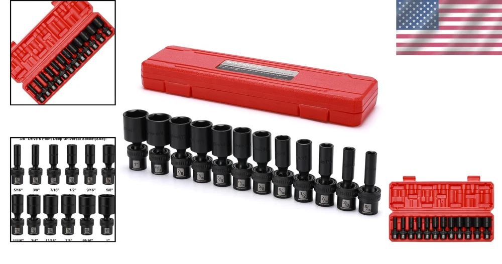 High-Quality 3/8" Drive Black Phosphate Deep Impact Socket Set - 12 Pieces ‹ › ‹ › ‹ › ‹ › ‹ › ‹ › ‹ › ‹ › ‹ › ‹ › High-Quality 3/8" Drive Black Phosphate Deep Impact Socket Set - 12 Pieces Features: Premium CR-MO: Constructed from premium impact grade chrome molybdenum steel, featuring a black phosphate finish for enhanced durability. Comprehensive Set: This 12-piece 3/8" Drive Deep Impact Socket Set includes sizes: 5/16", 3/8", 7/16", 1/2", 9/16", 5/8", 11/16", 3/4", 13/16", 7/8", 15/16", and 1". Versatile Design: The flexible socket design allows for a full 360° of movement, enabling the universal head to angle and rotate, making it ideal for accessing tight spaces with ease. Laser Marking: High-contrast size markings are permanently laser etched for easy readability, even in low light conditions. Service Guarantee: All tools meet or exceed ANSI performance standards and come with a 1-year quality guarantee. Benefits: Durable construction ensures longevity and reliable performance in demanding environments. Versatile use for a range of mechanical tasks—from automotive repairs to woodworking projects. Easy identification of socket sizes helps streamline your work and improve efficiency. Conveniently designed for accessing tight and confined spaces without compromising strength. Why choose our Socket Set? Elevate your tool collection with our High-Quality 3/8" Drive Black Phosphate Deep Impact Socket Set. Designed with the professional and DIY enthusiast in mind, this 12-piece set combines durability and functionality, making it your go-to solution for intricate tasks. Crafted from premium chrome molybdenum steel, each socket is built to withstand the rigors of hard work, while the laser-etched markings ensure you can identify the right tool in an instant. Don't settle for less when it comes to your tools. Invest in a set that promises both quality and performance. Order your Socket Set today and experience the difference it makes in your projects! Shipping Free & Fast Shipping - We offer free shipping to most of the USA with a normal delivery time of 3-10 businessdays. However, due to various situations, additional delivery time (up to 3 weeks) may be required for some items. Alternative Carriers - We may use alternative carriers (e.g. USPS, FedEx, UPS, etc.) to ensure your package arrives safely and on time. Due to the use of multiple carriers, we are unable to provide a tracking number automatically. Handling Time - Orders are processed and shipped within 1-5 business days of receiving cleared payment. Shipping Restrictions - Shipping to Alaska, Hawaii, Puerto Rico, Guam, and other US territories may incur shipping charges or delivery restrictions. Please contact us before ordering, or your order can be refunded/cancelled. State Restrictions - There may be restrictions based on your state of purchase. For example, certain items may not be shipped to California due to state regulations. Contact for Tracking Updates - If you require tracking updates or have any concerns about the delivery of your order, please feel free to contact us, and we will be happy to assist you. Return Please see our ebay return policy. We do not accept return on most products. This is to avoid customers mis-using ebay returns. All sales are final. Please be sure to check the return policy listed at the top of the listing. In rare cases, we may accept returns, if the buyer pays both ways shipping and 20% restocking fee. If you are un-sure of return policy of a particular item, please ask before buying. Payment We accept all major credit cards, PayPal, and Apple Pay for your convenience. Your payment information is secure and encrypted to ensure a safe and seamless transaction. Please complete your payment within 3 days of purchase to avoid any delays in shipping. Feedback Your feedback is extremely important to us. We strive to provide the best products and customer service possible. If you are satisfied with your purchase, please take a moment to leave us a positive review. If you have any concerns or issues with your order, please contact us before leaving negative feedback. We are committed to resolving any problems and ensuring your satisfaction. Contact Us If you have any questions or concerns, please feel free to reach out to our customer support team. You can contact us through the eBay messaging system. We are available Monday to Friday, 9:00 am to 5:00 pm EST, and we will do our best to respond to your inquiry within 24 hours. Buy it now and enjoy a pleasant shopping experience! Manufacturer Part Number: Deep Impact Socket Set UPC: Not Set Unit Quantity: 5.47 Tools Included: Sockets,5/16,3/8,7/16,1/2,9/16,5/8,11/16,3/4,13/16,7/8,15/16,1 System of Measurement: SAE Size: 5/16in.,3/8in.,7/16in.,1/2in.,9/16in.,5/8in.,11/16in.,3/4in.,13/16in.,7/8in.,15/16in.,1in. Brand: Unbranded Socket Type: Universal/Swivel Drive Type: 6 Point Drive Size: 3/8in. Surface Finish: Black Phosphate Warranty: 1 Year Number of Pieces: 12 Country/Region of Manufacture: Not Set Unit Type: lb Set or Single Item: Not Set