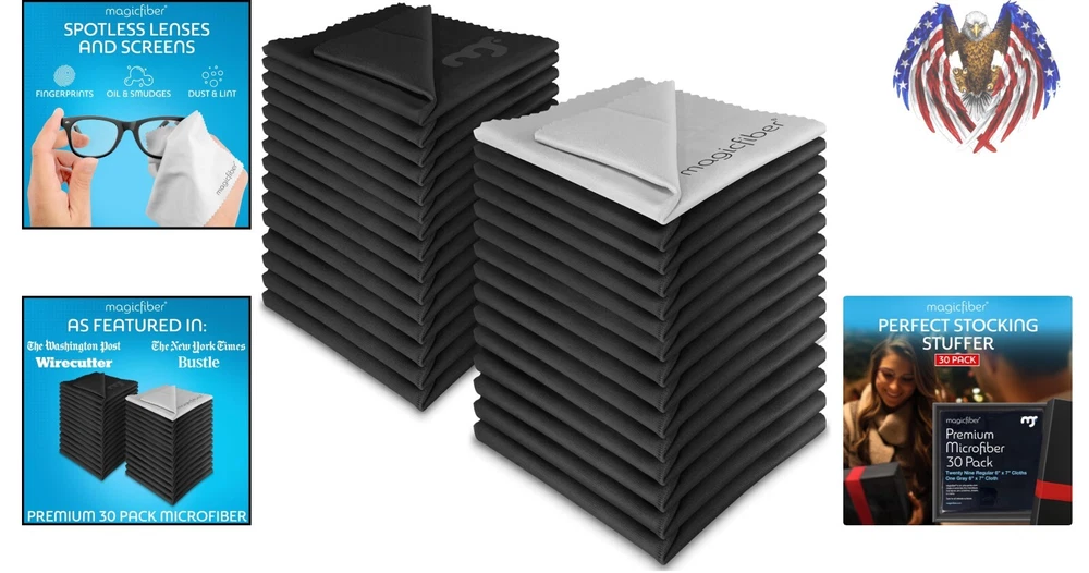 Color: Black Number in Pack: 30 Capacity: 30 pack UPC: Does Not Apply Item Width: Microfiber Cleaning Cloths Features: Reusable, Lint Free, Streak Free, Hypoallergenic Item Length: Microfiber Cleaning Cloths For: Electronics Brand: Unbranded gtin13: Does Not Apply Type: Cloth Material: Microfiber Size: Small Product Dimensions: 6.7 X 4.3 X 0.2 Inches Item Height: Microfiber Cleaning Cloths Item Weight: 6.4 oz