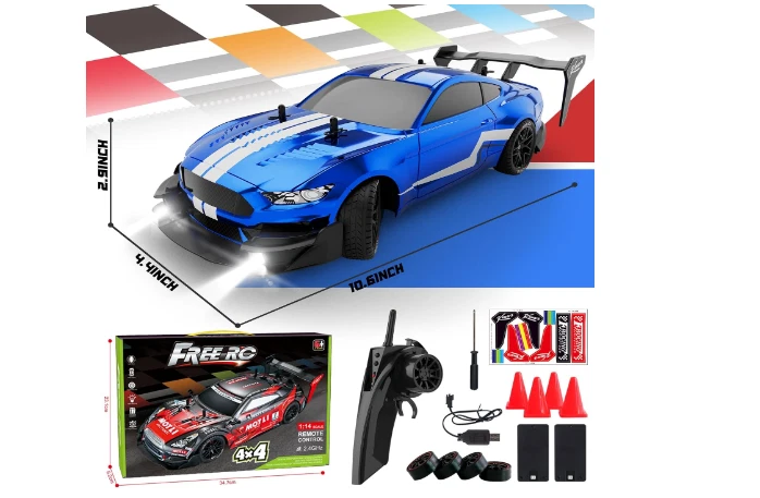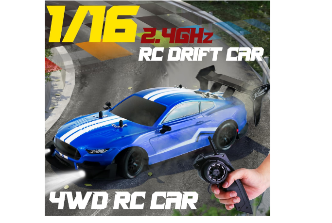 High-Speed 4WD RC Drift Car – 1:16 Scale Remote Control Racing Car 🏎️【HIGH-SPEED PERFORMANCE】 Experience the thrill of racing with this 1:16 scale RC drift car! Designed for speed, it can reach up to 30KM/H, delivering an adrenaline-pumping racing experience. The remote control is user-friendly, allowing full-scale synchronous control, including forward, backward, left, and right turns, along with proportional acceleration. Built with a durable power housing, it’s designed to withstand impacts while racing. 🌟【4WD DRIVE SYSTEM】 Equipped with a powerful 4-wheel-drive system, this RC drift car is ready to tackle any terrain. Whether you’re conquering rough surfaces or drifting smoothly on the road, the strong motor and 4WD capability ensure an exciting and dynamic racing experience. 💡【DURABLE SHELL & COOL LED LIGHTS】 This RC car features a tough, collision-resistant shell for long-lasting durability. With two pairs of LED lights that flash when powered on, it’s perfect for night driving, adding an extra layer of excitement. The sleek design and powerful drift capabilities make this car a must-have for any RC enthusiast. 📡【2.4GHZ REMOTE CONTROL & LONG PLAYTIME】 Enjoy uninterrupted fun with the 2.4GHz remote control system, providing a range of up to 160 feet (50 meters) and allowing multiple players to race simultaneously without interference. Includes 2 rechargeable 7.4V 600mAh batteries, offering up to 50 minutes of total playtime (25+ minutes per battery) after a 3-hour charge. Double the fun and excitement! 🎁【PERFECT GIFT FOR ALL AGES】 This RC drift car is not just a toy—it’s a collector’s item that can be displayed as a stunning exhibit. Ideal for kids and adults alike, it’s the perfect gift for birthdays, holidays, or as a reward for RC car enthusiasts. Get ready to drift, race, and conquer with this high-performance RC drift car! 🚗💨