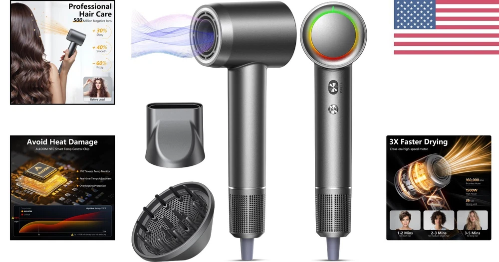 High-Speed 160,000 RPM Ionic Hair Dryer with Smart Temperature Control - Gray ‹ › ‹ › ‹ › ‹ › ‹ › ‹ › ‹ › ‹ › ‹ › ‹ › ‹ › High-Speed Ionic Hair Dryer 160,000 RPM With Smart Temperature Control - Gray Revolutionary Innovation, Redefining Hair Dryers! Experience the latest HPD brushless motor that delivers an astounding speed of up to 160,000 RPM. Dries hair 5 times faster than conventional dryers, making hair care a breeze! Features advanced high-concentration negative ion technology for frizz-free, radiant hair. Intelligent temperature control keeps your hair protected from heat damage, delivering salon-quality results at home. Lightning-Fast Drying Achieve lightning-fast drying with a maximum wind speed of 36m/s. Dries short hair in just 1 minute, medium to long hair in 2 minutes, and long hair in 4 minutes. Dramatically cut down your hair care routine and fit more into your day. Advanced Ionic Care for Silky-Smooth Hair Releases up to 500M negative ions, deeply nourishing and protecting your hair. Reduces static electricity and friction, preventing tangles and frizz. Locks in moisture for smoother, more manageable hair. Smart Temperature Control Features an innovative LED ring to indicate different modes: Red for hot air, Orange for warm air, and Green for cool air. NTC intelligent temperature control sensor ensures precise heat adjustment 110 times per second. Perfect for all hair types including curly, thick, and fine hair. Lightweight & Quiet Weighs only 0.89 lb, making it lighter than a cup of coffee for ergonomic comfort. Designed to minimize arm fatigue for a comfortable experience during use. Equipped with noise reduction technology, maintaining sound levels under 51 dB for peaceful drying. Why Choose Our High-Speed Ionic Hair Dryer? Step into a new realm of hair care with this powerful yet gentle hair dryer that combines technology and elegance. Perfect for busy lifestyles, this dryer offers an extraordinary blend of speed, efficiency, and hair-friendly features. Enjoy professional results in the comfort of your home, and say goodbye to frizz and hello to smooth, luscious locks every single day. Transform your hair drying experience - indulge in luxury and efficiency with our High-Speed Ionic Hair Dryer today! Shipping Free & Fast Shipping - We offer free shipping to most of the USA with a normal delivery time of 3-7 days. However, due to the current situation, additional delivery time (up to 3 weeks) may be required for some items. Alternative Carriers - We may use alternative carriers (e.g. USPS, FedEx, UPS, etc.) to ensure your package arrives safely and on time. Due to the use of multiple carriers, we are unable to provide a tracking number automatically. Handling Time - Orders are processed and shipped within 1-2 business days of receiving cleared payment. Shipping Restrictions - Shipping to Alaska, Hawaii, Puerto Rico, Guam, and other US territories may incur shipping charges or delivery restrictions. Please contact us before ordering, or your order can be refunded/cancelled. State Restrictions - There may be restrictions based on your state of purchase. For example, certain items may not be shipped to California due to state regulations. Contact for Tracking Updates - If you require tracking updates or have any concerns about the delivery of your order, please feel free to contact us, and we will be happy to assist you. Return 30-Day Hassle-Free Returns - We want you to be completely satisfied with your purchase. If you are not, you can return the item within 30 days of receiving it for a full refund or exchange. Easy Return Process - To start a return, simply contact us and we will provide you with a prepaid return shipping label and detailed instructions. Restocking Fee - There are no restocking fees for returns. However, the buyer is responsible for return shipping costs if the return is not due to a seller's error. Refund Processing Time - Refunds will be processed within 5 business days of receiving the returned item in its original condition. Payment We accept all major credit cards, PayPal, and Apple Pay for your convenience. Your payment information is secure and encrypted to ensure a safe and seamless transaction. Please complete your payment within 3 days of purchase to avoid any delays in shipping. Feedback Your feedback is extremely important to us. We strive to provide the best products and customer service possible. If you are satisfied with your purchase, please take a moment to leave us a positive review. If you have any concerns or issues with your order, please contact us before leaving negative feedback. We are committed to resolving any problems and ensuring your satisfaction. Contact Us If you have any questions or concerns, please feel free to reach out to our customer support team. You can contact us through the eBay messaging system. We are available Monday to Friday, 9:00 am to 5:00 pm EST, and we will do our best to respond to your inquiry within 24 hours. Buy it now and enjoy a pleasant shopping experience! UPC: Not Set Unit Quantity: 0.89 lb Features: Ionic Technology,High-Speed,Professional-grade,Lightning-Fast Drying,Thermo-Control,Low Noise,Smart Temperature Control,Ergonomic Design,Lightweight,Noise Reduction,Magnetic Diffuser,Magnetic Nozzle,Travel-friendly Barrel Size: Professional Hair Dryer Power Source: Electric,Corded Electric Power: 1500 W Department: Men,Unisex,Unisex Adults,Women Material: Metal,Plastic,Aluminum Brand: Unbranded Type: Professional Hair Dryer Color: Gray Model: Not Set Maximum Temperature: Not Set MPN: Not Set Number of Temperature Settings: 3 Number of Speeds: More Than 4 Size: Not Set Country/Region of Manufacture: Not Set Manufacturer Warranty: Not Set Unit Type: lb