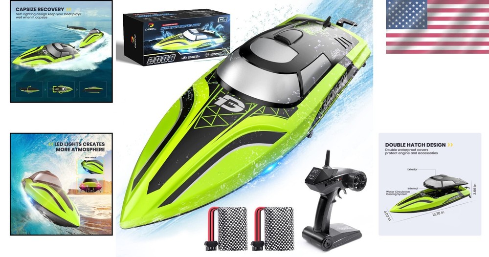 Rechargeable High-Speed RC Boat with LED Lights - Perfect for Pools & Lakes! ‹ › ‹ › ‹ › ‹ › ‹ › ‹ › ‹ › ‹ › ‹ › ‹ › ‹ › Rechargeable High-Speed RC Boat with LED Lights Experience the thrill of the water with our premium RC Boat, designed for an unparalleled boating adventure in pools and lakes alike! Product Features: Two Powerful Batteries: Enjoy endless fun with two high-quality 7.4V, 1200mAh rechargeable Li-ion batteries, providing an impressive 30+ minutes of continuous playtime. Unmatched Speed: Reach exhilarating speeds of 20+ MPH, perfect for racing enthusiasts eager for adventures on the water. Self-Righting Technology: Equipped with self-righting functionality, our RC boat maintains its optimal position, ensuring smooth sailing even in challenging conditions like winds and waves. Cool Auto-Pilot Mode: A simple press on the remote allows the boat to perform mesmerizing '8' or 'O' shape demonstrations, enabling you to relax while it navigates around with style. Radiant LED Lights: Navigate effortlessly even at night with stunning LED illumination, combining safety with visual delight. Low Battery Power Alarm: Stay informed with a built-in alert system that warns you when the boat’s battery is running low, preventing unexpected interruptions to your fun. Ideal Gift: A delightful surprise for both kids aged 14 and up as well as adults, this high-speed RC boat makes for a fantastic gift for any occasion. Why Choose Our Rechargeable RC Boat? Experience the ultimate in remote-controlled boating with our Rechargeable High-Speed RC Boat. It is not only engineered for speed and agility, but also designed for convenience and safety. The combination of powerful batteries, self-righting technology, and auto-pilot mode ensures maximum enjoyment and ease of use. Perfect for fun weekends or unforgettable holiday gifts, this RC boat promises hours of excitement on the water! Don't let the waves wait! Grab your Rechargeable High-Speed RC Boat now and make a splash! Shipping Free & Fast Shipping - We offer free shipping to most of the USA with a normal delivery time of 3-10 businessdays. However, due to various situations, additional delivery time (up to 3 weeks) may be required for some items. Alternative Carriers - We may use alternative carriers (e.g. USPS, FedEx, UPS, etc.) to ensure your package arrives safely and on time. Due to the use of multiple carriers, we are unable to provide a tracking number automatically. Handling Time - Orders are processed and shipped within 1-5 business days of receiving cleared payment. Shipping Restrictions - Shipping to Alaska, Hawaii, Puerto Rico, Guam, and other US territories may incur shipping charges or delivery restrictions. Please contact us before ordering, or your order can be refunded/cancelled. State Restrictions - There may be restrictions based on your state of purchase. For example, certain items may not be shipped to California due to state regulations. Contact for Tracking Updates - If you require tracking updates or have any concerns about the delivery of your order, please feel free to contact us, and we will be happy to assist you. Return Please see our ebay return policy. We do not accept return on most products. This is to avoid customers mis-using ebay returns. All sales are final. Please be sure to check the return policy listed at the top of the listing. In rare cases, we may accept returns, if the buyer pays both ways shipping and 20% restocking fee. If you are un-sure of return policy of a particular item, please ask before buying. Payment We accept all major credit cards, PayPal, and Apple Pay for your convenience. Your payment information is secure and encrypted to ensure a safe and seamless transaction. Please complete your payment within 3 days of purchase to avoid any delays in shipping. Feedback Your feedback is extremely important to us. We strive to provide the best products and customer service possible. If you are satisfied with your purchase, please take a moment to leave us a positive review. If you have any concerns or issues with your order, please contact us before leaving negative feedback. We are committed to resolving any problems and ensuring your satisfaction. Contact Us If you have any questions or concerns, please feel free to reach out to our customer support team. You can contact us through the eBay messaging system. We are available Monday to Friday, 9:00 am to 5:00 pm EST, and we will do our best to respond to your inquiry within 24 hours. Buy it now and enjoy a pleasant shopping experience! UPC: Not Set MPN: Not Set Age Level: 12-16 Years,Kid Type: Speed/Racing Boat Brand: Unbranded Fuel Type: Electric Motor Type: Brushed Material: Plastic Scale: 1:12 Model Grade: Not Set Color: Brushed Green Required Assembly: Not Set Replica of: Not Set Vintage: Not Set Lot (Y/N): Not Set Model: Not Set Country/Region of Manufacture: Not Set