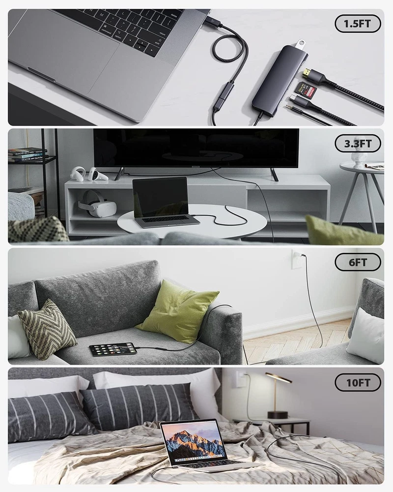 【Upgraded 20Gbps High-Speed Data Transfer】Faracent usb 3.2 type c data and charging Extension cable, which is used to extend the use distance of the type c interface. Our usb c extension cable provides super-fast data syncing at a maximum speed of 20Gbps, transferring an HD movie in just seconds. (NOTE: The transfer speed depends on the speed supported by your device port; Please use USB-C to C port to reach 20Gbps speed.) 【240W Ultra-Fast Charging】Faracent usb c extender cable supports 240W (48V/5A) fast charging function, bringing you the ultimate charging experience. Backward compatible with various power levels including 140W, 100W, 65W, and 30W. (Note: the charging power depends on the upper limit of your device.) 【4K@60Hz HD Video Output】Faracent usb type c extension cable supports up to 4K@60Hz resolution HD video output from USB C laptops to USB C display screen or monitor. Whether you are watching home movies or playing games, it can bring you a great experience! 【Durable and Flexible】Faracent usb c extension cord made of dual-layered nylon braided, providing exceptional durability and flexibility. Aluminum alloy connectors can withstand wear and tear better, enhancing the cable's lifespan. 【Compatible with Most USB C built-in devices】For usb-c devices/CF/SD/TF card reader and mutil-port USB hub/dock, iPhone 16 15, PSVR2, Mag Safe Wireless Charger, MacBook air M3 /M2/ M1 Mac mini, iPad Mini, Chromebook Pixel, Nexus 5X 6P, Lumia 950 950XL .(*Note: This cable not work with any thunderbolt 3 docking/hub/cable, Most Dell docking station is based on the thunderbolt 3 input. So this extender cable is not compatible, for example : Dell TB15,16 thunderbolt 3 docking station and the Belkin thunderbolt 3 dock,HP thunderbolt 3 dock, Oculus Quest Link ). Product Description 1 For Switch 2 For VR 3 For USB HUB Troubleshooting Step: 1)We don‘t recommend using our extension cable to connect multi-interface hubs as it may cause incompatibility or failure to work. 2)Video transmission will be unstable due to video signal attenuation from the connector. We suggest a total length within 10ft for both your usb c HDMI cable and this extension cable to achieve best charging and 4k video performance. If it exceeds 3 meters, instability or inability to use may occur. 3)Our extension cable is the charging speed of PD 240W . If you uses a low wattage charging cable, the charging speed will decrease. 4)Our extension cable incompatible All Dell Thunderbolt Dock / Hub / Base, e.g. Dell Business Thunderbolt Dock TB16 with 240W Adapter. 5)Our product can charge iPad, but it can't be used to connect USB C to 3.5mm audio cable for iPad. 6)We don't recommend using the device while charging, as it will easily generate heat, or the interface will shake loose during use, which will affect the normal charging. 7)If there is the problem when connected with your mouse, keyboard or printer (USB 2.0 devices), please reverse the female connector (receptacle) of the usb c extension cable.