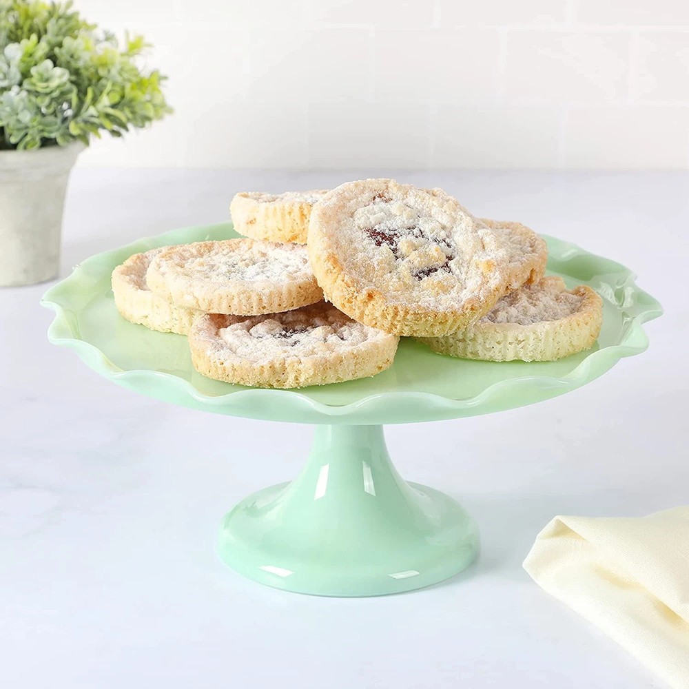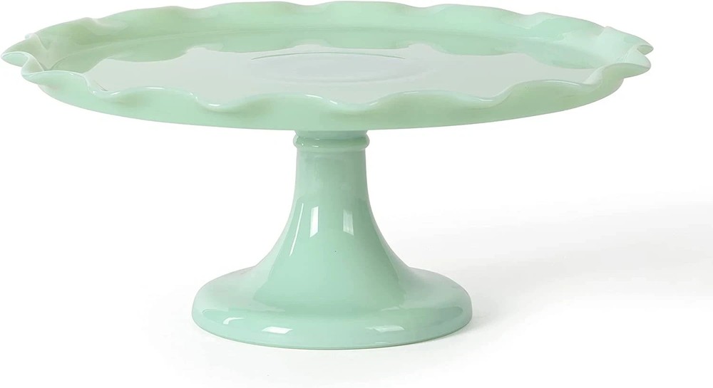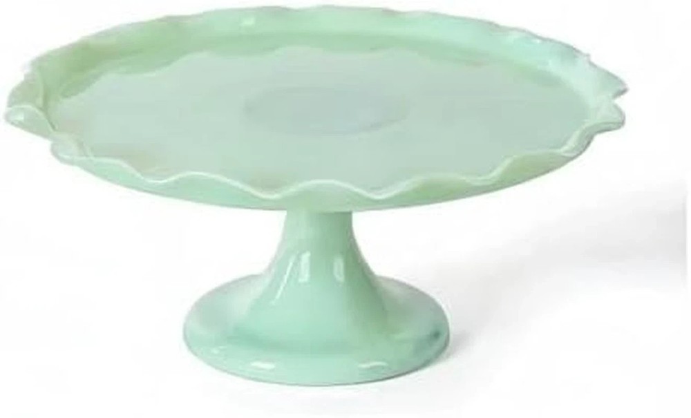 Highbrook 11" Handmade Jadeite Glass Cake Stand - Ruffle Trim