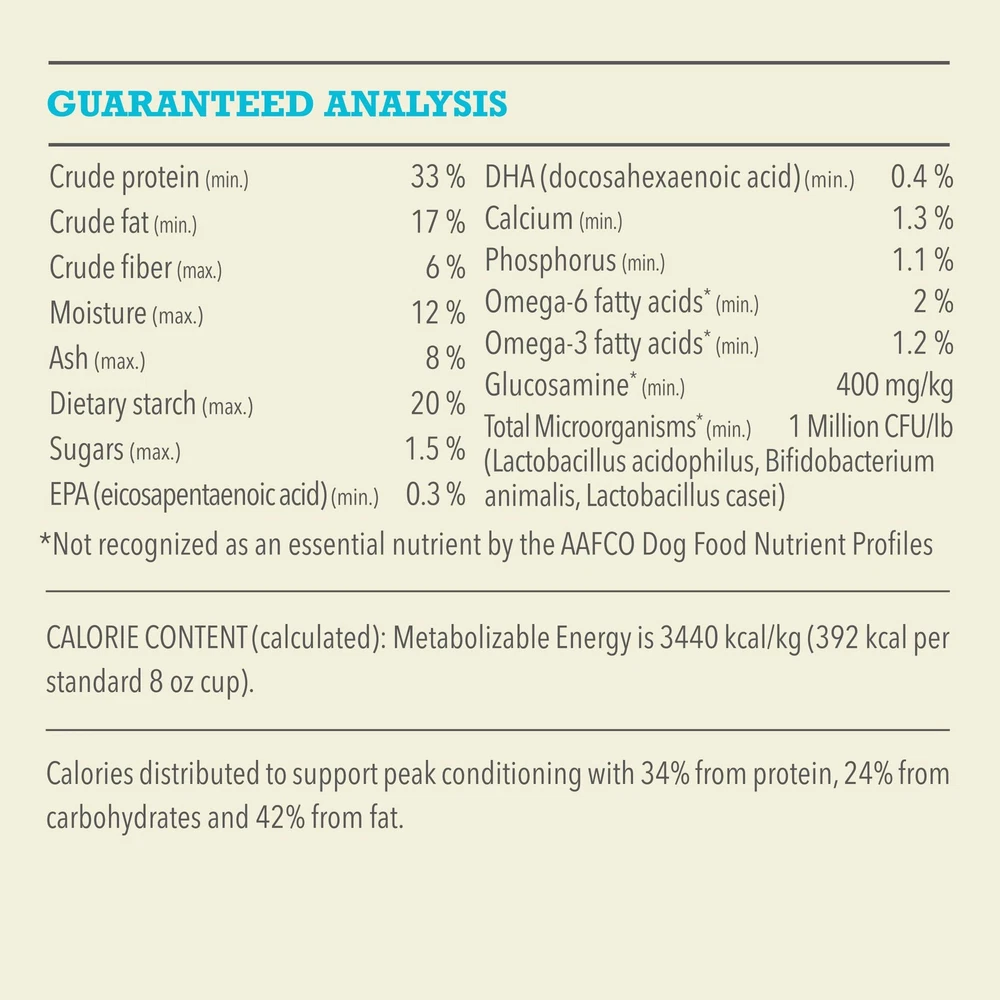 One (1) 4.5 lb bag of Grain Free* Wild Atlantic Recipe Dry Dog Food High protein dog food recipe features 70 percent** animal ingredients and 30 percent*** wholesome fruits, vegetables A freeze dried dog food coating adds rich flavor dogs crave Protein-rich animal ingredients are balanced with wholesome fruits and vegetables for a nutritious, high-fiber dog food with the highest protein offering of pet foods Premium dog food made in the USA with quality ingredients from around the world