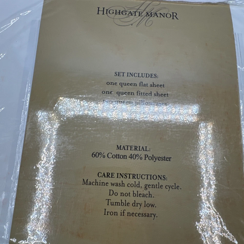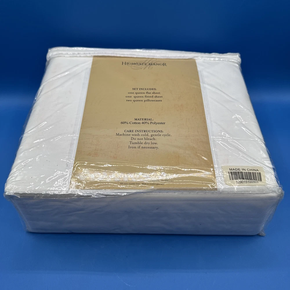 Brand: Highgate Manor Size: Queen Type: Sheet Set Room: Bedroom Material: 60% Cotton, 40% Polyester Country/Region of Manufacture: China Color: Ivory Pattern: Solid Color