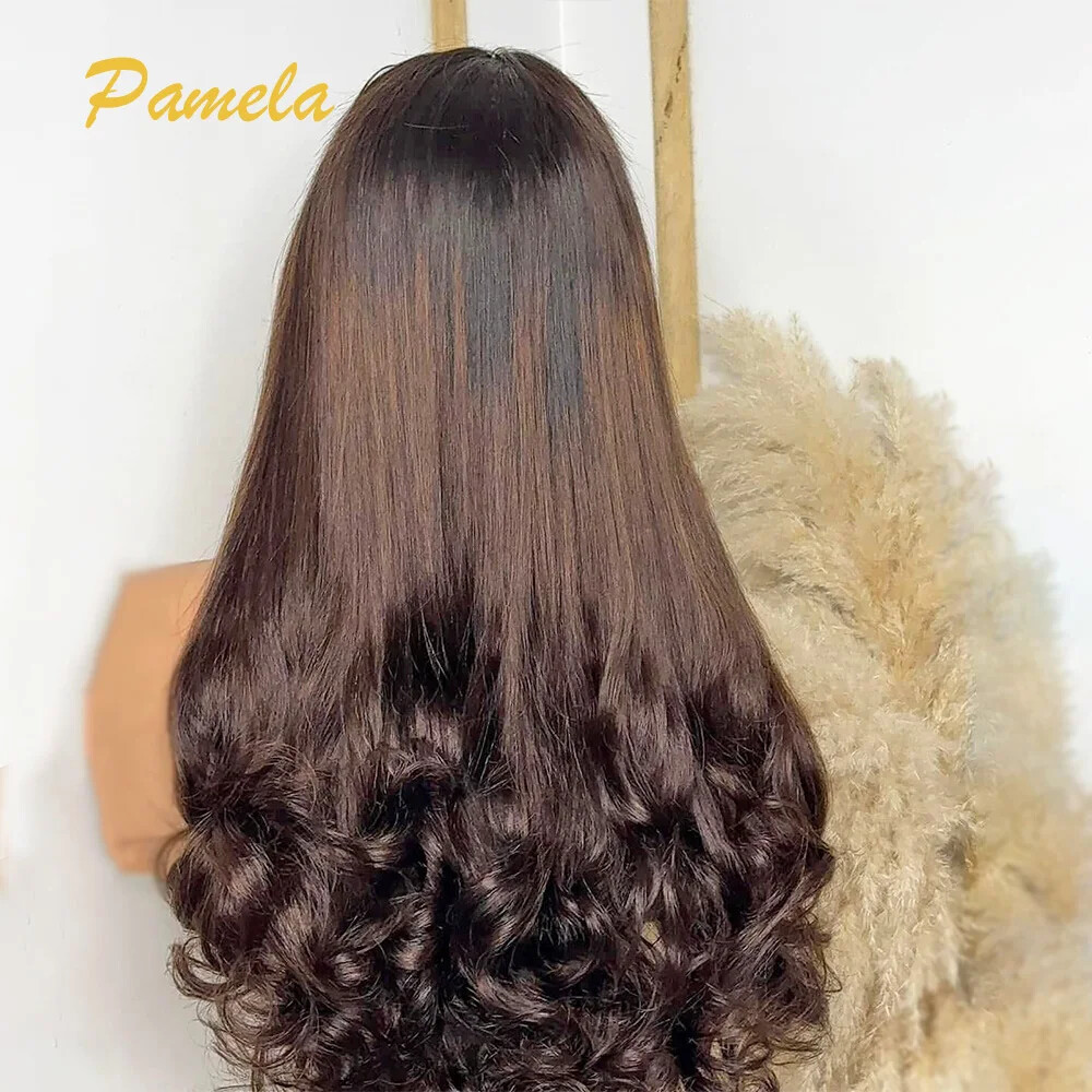 Short Curly Ombre Brown Brazilian Human Hair Wig with Bangs No Lace Glueless Wig