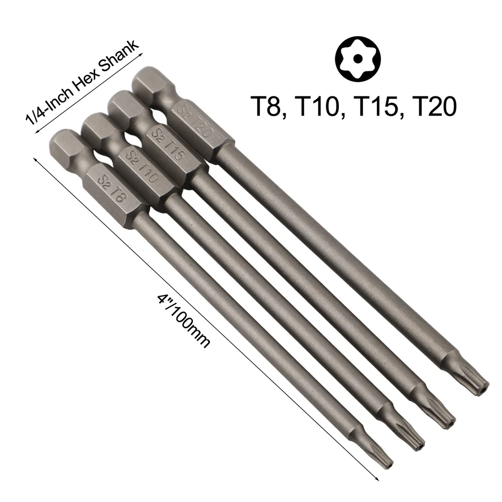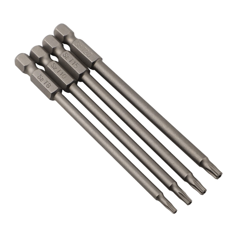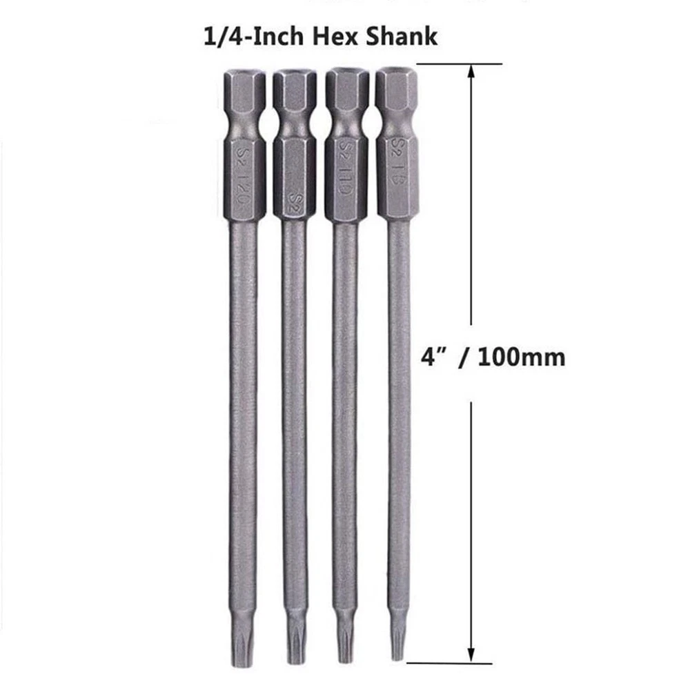Beschreibung Features: *4 Different Type of Head: for Torx/ Hex Head/ Cross/ Flat Head Slotted Tip. *Made of alloy steel; for steel material color. *With magnetic, can suck the screws easily when using. *1/4-Inch hex shank widely used on electric screwdrivers, hand screwdrivers, cordless drills, . *Exquisite workmanship, each edge can accurately lock the screw without damaging the screw or the screwdriver head. Specifications: *Product Name: Screwdriver Bits *Material: alloy steel *Color: Silver(As Pictures Show) *Optional Types: A: SL3, SL4, SL5, SL6 B: PH2*Φ4, PH2*Φ4.5, PH2*Φ5, PH2*Φ6 C: T8/10/15/20 D: H3, H4, H5, H6 *Size of shank: 6.35 mm/ 1/4 inch hex *Length: approx. 100mm *Quantity: 4pcs Package Contents: 4 x Screwdriver Bits Note: 1.The real color of the item may be slightly different from the pictures shown on website caused by many factors such as brightness of your monitor and light brightness. 2.Please allow slight manual measurement deviation for the data. POLICES Shipping Payment WARRANTY We only ship to confirmed ebay Order addresses. Please comfirm that your Order address is in line with your shipping address. Please kindly note that the c ombined shipping is not provided because the shipping fee is calculated by weight. Also, the each additional item means exactly the the same color and size. It takes about 7 -15 working days to US; about 10-30 working days to other countries. Transit time may be a little delayed because of the bad weather and customs inspection . If you do not receive your item within 30 working days since payment finished, please contact us immediately for further assistance. Payment must be completed within 5 days. If you have any problems about payment, please contact us via ebay message. We strive for 100% customer satisfaction! Positive Feedback is very important to us. If you have any questions, p lease feel free to contact us via "Ask seller a question" . We will reply your email within 24 working hours.