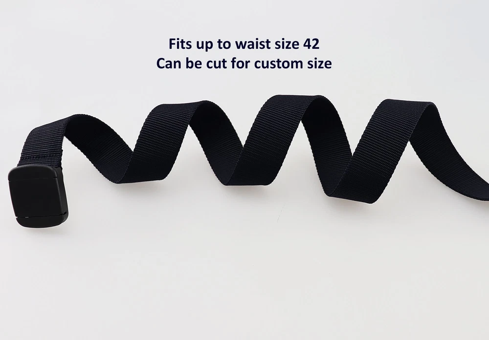 The Hiker Belt is perfect for any outdoor adventure. With it's military grade nylon blend webbing and strong cam locking polycarbonate buckle, it proves to be lightweight and yet holds tight. Travel friendly as it's completely metal free, nickel free and non allergenic. The waterproof design also makes it perfect for hiking, camping, fishing, or just casual wear. Adult size will fit up to pant size 42 and measures 47 inches total. Width is 1.25 inches. Custom fit to size by cutting and singeing the end. [Ultimate Outdoor Companion] Designed with a durable 1.25" wide water-resistant canvas web strap, making it the ideal accessory for hiking, fishing, camping, cycling, and any outdoor adventure. Built to withstand the elements and ensure a comfortable fit all day long. [Perfect Fit ] A customizable fit with our trim-to-fit sizing. The strap fits up to a 42" waist and can easily be trimmed down to your desired length, ensuring a secure fit. [Versatile & Stylish] This belt's sleek and practical design can be worn with hiking pants, fishing gear, or casual outfits for a stylish yet functional look. [Effortless Travel] Featuring a polycarbonate plastic cam buckle, the Hiker Belt is completely metal-free. Breeze through airport security checkpoints without the hassle. Nickel-free and non-allergenic, it's ideal for those with metal sensitivities. [Great Gift ] - Whether you're shopping for an avid hiker, a frequent traveler, or someone who simply loves the great outdoors, the Hiker Belt makes an excellent gift. Its combination of practicality and style will be appreciated by anyone on your list for Father's Day, Mother's Day, Birthdays and more. [Made in the USA from Global Materials] Made from high-quality materials, the Hiker Belt is lightweight yet incredibly strong