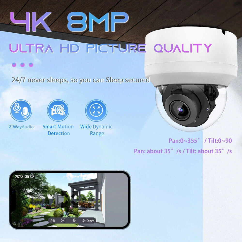 Hikvision Compatible 4K 8MP 2-Way Audio Security IP Camera Outdoor POE 5X Zoom