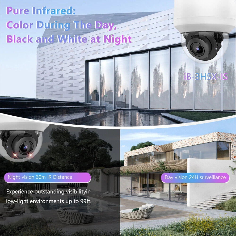 Features: 1. System Function 3.5 inch Mini speed dome, beautiful appearance;Friendly quick install structure design,easier building. Smoke-colored riot transparent cover,concealed monitoring. Adopt high-performance sensor, H.265+/H.265/H.264 compression format,resolution achieve 3840x2160. Support ONVIF protocol. Support English IE interface and operation tips function, user friendly interface. Protection grade: IP66. 2. Infrared function 2pcs Array Led,IR Distance 20-30M,minimum Illumination:0 Lux The constant current circuit design,Infrared ages can be reach 30 thousand hours. 3. IP Zoom camera function Adopt high-performance DSP platform, stable and reliable performance. Effective pixels 8.0 million pixels,4K(3840*2160). support auto focus, AWB and BLC. Support digital WDR function. Support two-way audio function,G.711 compression,support audio-video synchronization. Built-in high sensitivity microphone and high powerhorn,support two-way voice intercom,humanoid recognition voice to broadcast the alert. Support TF card slot, Supports up to 512GB TF card storage. 5x(2.7-13.5mm) optical zoom (optional). Support POE power supply,802.3af/802.3at. 4. IP Network function Support Ethernet remote control. You can view real-time image and control PTZ rotation through IE browser,PC Client softwar,and NVR. Support multi-levels of user rights management, support for authorized users and passwords, support HTTPS encryption and network access control. Support H.265+/H.265/H.264 compression format,dual stream output 5MP+D1 Support P2P mobile phone remote, view real-time images and PTZ control. WEB configure, real time recording transmission and playback, Free client software supported, SDK for customer software development. Support multi-protocols:IPv4,HTTP,HTTPS,FTP,UPnP, DNS,DDNS,NTP,RTSP,RTP,TCP/IP, UDP/IP,DHCP,etc. 5. PTZ Control Function Horizontal rotation 355°, tilt rotation 90°,control speed 50°/s Specification: Model Number iB-3H5X-IS Camera Image Sensor: 1/ 2.7 " SONY CMOS Effective Pixels: 8.0 MP pixels , 4K:3840*2160,H.265+/ H.26 5/H.264 Focal Length: 5X(2.7-13.5mm) optical zoom option Min. Illumination: Color: 0.0 0 5Lux@(F1.6, AGC ON), B/W: 0.0 0 1Lux@(F1.6, AGC ON) 0Lux with IR White Balance: Auto/Manual AGC: Auto/Manual Focus Mode: Auto/Manual/ SemiAuto Day & Night: IR Cut Filter ,Auto,Color,B/w DN R Low/Middle/High/Off Back light Compensation: ON/OFF DWDR : Support, on/off S/N Ratio: ≧ 5 0 dB Pan/Tilt Pan / Tilt Range: Pan: 3 55 ° Continuous Rotation ; Tilt: 0 ° ~ 90° Rotation t Speed: Rotation Speed: 0.5-5 0° /s Proportional Zoom: support IP Network function Net Interface RJ45 Ethernet interface ,Support 10M/100 M Image Compression: H.265+/ H.26 5/H.264 Dual Rate 8M P+D1 Audio G.711 compression Network Protocols: IPv4,HTTP,HTTPS,FTP,UPnP, DNS,DDNS,NTP,RTSP, TCP/IP, UDP/IP, DHCP, etc. Client Support ONVIF support Onvif Protocol SD Cord Max 512G POE Support ,802.3af/802.3at Business Function Support WEB, real-time video transmission; motion detection and Human form detection IR Function IR Lamp 2 H igh power array infrared LED IR Distance 2 0 -30 M Infrared LED on Auto General Protocols: Pelco-P, Pelco-D, self-adaptive Working Temperature: - 2 0°C~6 5 °C Humidity: ≤90% , Non- condensing Waterproof grade : IP6 6 Mount Option: Ceiling mount Power: DC12V/ 2 A ( ±10% ), ≤ 8 W Accessories : Installation manual , accessories bag About Us Payment and Shipping: 1. we only accept PayPal payment. 2. We will ship your order within 5 days. Please make sure your shipping address and phone number are correct. Returns 1. If the item arrives with defects or errors, before you start the return process, please contact us via ebay message and we will provide you with a satisfactory solution. Communication is always the best way to solve problems. 2. If you do not receive your item on time, please contact us for further assistance. Feedback and Contact Us 1. we always try to provide every customer with the best service and the best quality products, but sometimes there may be accidents, if you are not satisfied with our goods or services, please feel free to leave a message to contact us, we believe we can solve all the problems for you. Please do not feel free to leave negative feedback. 2.If you are satisfied with our products, we also hope you can give us a five-star positive feedback. We will be grateful for that. About tariffs 1. Import duties, taxes and charges are not included in the item price or shipping cost, these charges are collected by the customs of your country. Buyers are responsible for paying import duties and taxes themselves, as stipulated by eBay. 2. Please check with your country's customs office before purchasing to determine these additional customs fees.