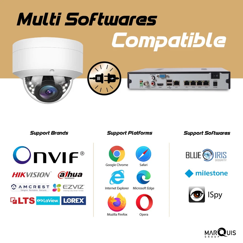 Features 1/2.8" Sony IMX335 CMOS se Full HD resolution 3072 x 204 Ultra low illumination 0.01Lu Day/Night (ICR), AWB, AGC, BLC, 2D/3D-DNR, IR-CU D-WDR, Motion Detection, Privacy Mask, RTSP and Onvif 17.06 compatible H.265/H.264 dual-stream media s Easy-to-use P2P Cloud s Multi web browser, PC Client, mobile APP Optional customization Lens/Audio/Alarm/Storage/POE, etc Lightning protection 4000V IK10 vandalproof and IP66 waterproof 18 pcs SMD IR Leds, IR distance 20-30 meters HD 2.8mm fixe