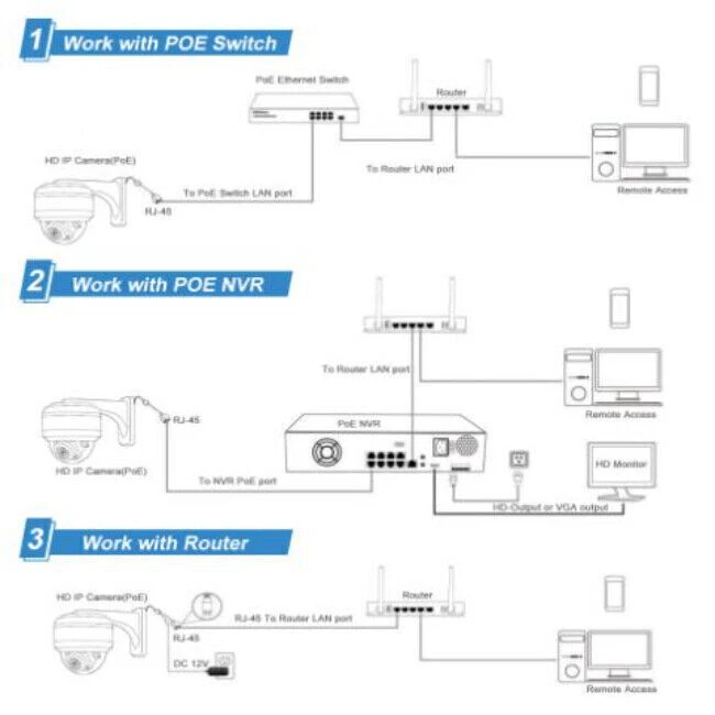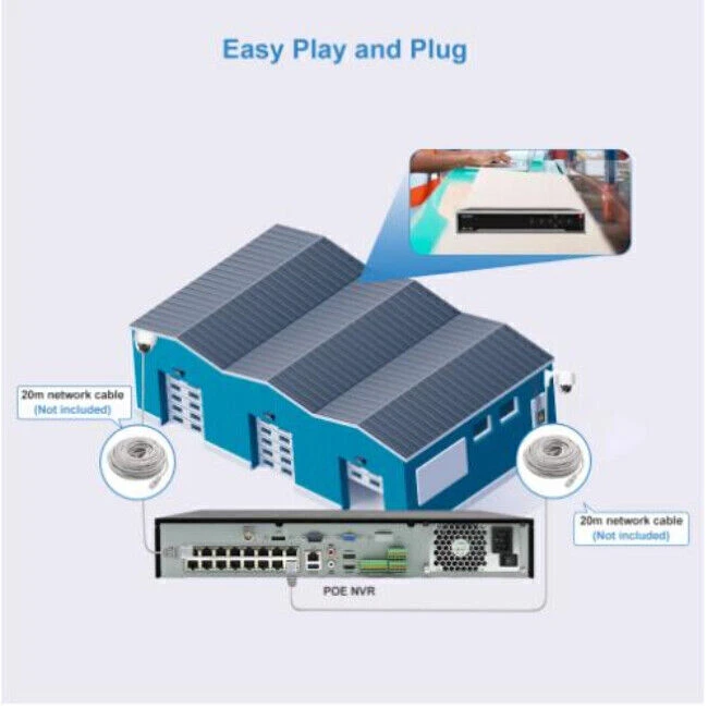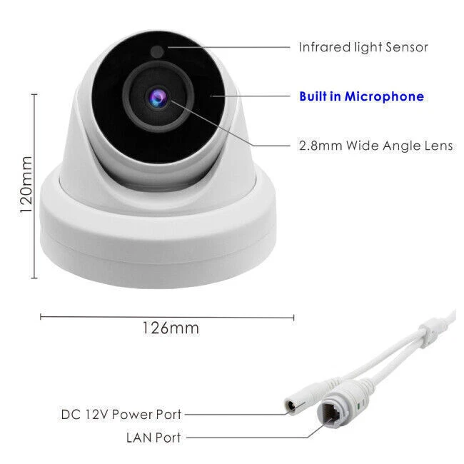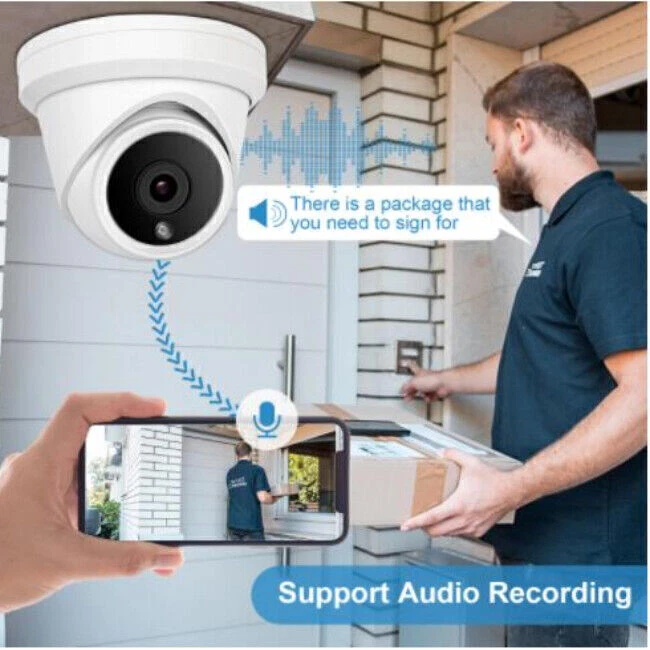 • H.265/H.264 8MP IP/Network IR Turret Dome Camera • Up to 8 megapixel high resolution • Max. 3840*2160(8MP)@20fps(50HZ/60HZ) •Support RTSP&Onvif(17.2 with profile S) • Compatible with many third-party NVRs and CMS • Support multiply Web Browsers: IE/Firefox/Chrome/Safari etc. • P2P Cloud service • Free PC Client Software and Smartphone APP(P2P) • Support Alarm Snapshot to Email and FTP • Day/Night, AWB/MWB,BLC, 3D-DNR,Shutter, IR-CUT D-WDR,Mirror, Image Flip etc. Functions • Built-in Mic • 12V DC (PoE) • 2.8mm fixed lens • IR range: up to 25m • Water-proof: IP66 • Metal Shell 8MP Ultra-clear Image Built-in 8MP ultra-clear high-resolution lens, with a high-sensitivity image sensor, this camera can capture more details of the image and bring you a better visual experience. Audio Recording and Noise Filter This POE security dome IP camera builts-in microphone with environmental noise filter function, which can record clear voices and provide vivid videos with sound. H.265 Video Compression, Save Much Storage Space and Money With the H.265 video compression technology, more memory space will be saved than the H.264 in storing the same videos. At the same time,this powerful function delivers much smoother video recordings and saves the cost ofbuying an extra HDD. Motion Detection & Get Instant Alerts Within the monitoring range, the system will automatically detect intruders, and push the alarm information in time, to remind you to take action to protect your property. PoE——Play and Plug with Less Effort This PoE IP camera only needs to be connected to a network cable to achieve the purpose of data transmission and power supply The installation is easy and simple. At the same time, this camera comes with Hikvision private protocol, so it can be play and plug with Hikvision NVR. Waterproof Metal Case, Widely Used Indoor & Outdoor The all-metal shell makes the camera have good waterproof, cold and heat resistance performance. Thus, you can install it to various indoor and outdoor places according to your needs. Camera's Working Temperature: -30°C ~ 60°C (-22℉ ~ 140 ℉) Night Vision Distance up to 25m With 18PCs LED lights and improved infrared radiation technology, this 5MP POE IP camera supports a long-distance night vision range of 20-30m, capturing clearer images and videos, which is very suitable for lanes, corridors, etc. Wider Field of View Compared with a camera with a 4mm lens and only a 98° diagonal viewing angle, this camera has a 2.8mm lens with a 130° diagonal viewing angle, allowing you to easily see more corners of the house. Remote View & Multiple Devices Support Even though far separate the thousand miles, you can know everything about monitoring area through “Danale”app on mobile phone, tablet or PC. 24/7 According, Providing Professional Protection It can work with all NVRs that support onvif protocol, such as Anpviz, Hikvision and Dahua ect., providing 24/7 continuous recording and professional protection for you. How to Connect About Us Payment and Shipping: 1. we only accept PayPal payment. 2. We will ship your order within 5 days. Please make sure your shipping address and phone number are correct. Returns 1. If the item arrives with defects or errors, before you start the return process, please contact us via ebay message and we will provide you with a satisfactory solution. Communication is always the best way to solve problems. 2. If you do not receive your item on time, please contact us for further assistance. Feedback and Contact Us 1. we always try to provide every customer with the best service and the best quality products, but sometimes there may be accidents, if you are not satisfied with our goods or services, please feel free to leave a message to contact us, we believe we can solve all the problems for you. Please do not feel free to leave negative feedback. 2.If you are satisfied with our products, we also hope you can give us a five-star positive feedback. We will be grateful for that. About tariffs 1. Import duties, taxes and charges are not included in the item price or shipping cost, these charges are collected by the customs of your country. Buyers are responsible for paying import duties and taxes themselves, as stipulated by eBay. 2. Please check with your country's customs office before purchasing to determine these additional customs fees.