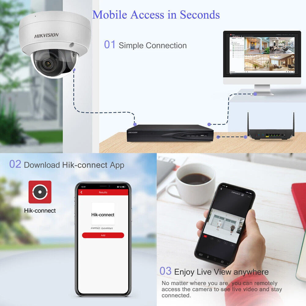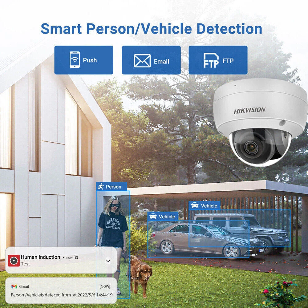 8MP AcuSense Fixed Dome Network Camera Supports Hikvision Embedded Open Platform (HEOP) and importing third party applications Supports 1.5 Tops computing power, 40 MB system memory, 350 MB smart RAM, and 2 GB eMMC storage for sharing resources High quality imaging with 8 MP resolution Excellent low-light performance with powered-by-DarkFighter technology Efficient H.265+ compression technology Clear imaging against strong back light due to 120 dB true WDR technology Focus on human and vehicle target classification based on deep learning Water and dust resistant (IP67) and vandal-resistant (IK10) Camera Image Sensor 1/1.8" Progressive Scan CMOS Max. Resolution 3840 × 2160 Min. Illumination Color: 0.003 Lux - (F1.6, AGC ON), B/W: 0 Lux with IR Shutter Time 1/3 s to 1/100,000 s Day & Night IR cut filter Angle Adjustment Pan: 0° to 355°, tilt: 0° to 75°, rotate: 0° to 355° Lens Lens Type Fixed focal lens, 2.8mm Focal Length & FOV 2.8 mm, horizontal FOV 111°, vertical FOV 59°, diagonal FOV 131° Lens Mount M12 Iris Type Fixed Aperture F1.6 DORI DORI 2.8 mm: D: 89.2 m, O: 35.4 m, R: 17.8 m, I: 8.9 m Illuminator Supplement Light Type IR Supplement Light Range Up to 30 m Smart Supplement Light Yes IR Wavelength 850 nm Video Main Stream 50 Hz: 25 fps (3840 × 2160, 3200 × 1800, 2688 × 1520, 1920 × 1080, 1280 × 720) 60 Hz: 24 fps (3840 × 2160) 30 fps (3200 × 1800, 2688 × 1520, 1920 × 1080, 1280 × 720) Sub-Stream 50 Hz: 25 fps (640 × 480, 640 × 360) 60 Hz: 30 fps (640 × 480, 640 × 360) Third Stream 50 Hz: 10 fps (1920 × 1080, 1280 × 720, 640 × 480, 640 × 360) 60 Hz: 10 fps (1920 × 1080, 1280 × 720, 640 × 480, 640 × 360) *Third stream is supported under certain settings. Video Compression Main stream: H.265/H.264/H.264+/H.265+ Sub-stream: H.265/H.264/MJPEG Third stream: H.265/H.264 *Third stream is supported under certain settings. Video Bit Rate 32 Kbps to 16 Mbps H.264 Type Baseline Profile/Main Profile/High Profile H.265 Type Main Profile Bit Rate Control CBR/VBR Scalable Video Coding (SVC) H.264 and H.265 encoding Region Of Interest (ROI) 1 fixed region for main stream and sub-stream Target Cropping Yes Audio Audio Type -U: mono sound Audio Compression -U: G.711ulaw/G.711alaw/G.722.1/G.726/MP2L2/PCM/MP3/AAC Audio Bit Rate -U: 64 Kbps (G.711ulaw/G.711alaw)/16 Kbps (G.722.1)/16 Kbps (G.726)/32 to 192 Kbps (MP2L2)/8 to 320 Kbps (MP3)/16 to 64 Kbps (AAC) Audio Sampling Rate -U: 8 kHz/16 kHz/32 kHz/44.1 kHz/48 kHz Environment Noise Filtering -U: Yes Network Protocols TCP/IP, ICMP, HTTP, HTTPS, FTP, DHCP, DNS, DDNS, RTP, RTSP, NTP, UPnP, SMTP, IGMP, 802.1X, QoS, IPv4, IPv6, UDP, Bonjour, SSL/TLS, PPPoE, SNMP, ARP Simultaneous Live View Up to 6 channels API Open Network Video Interface (PROFILE S, PROFILE G, PROFILE T), ISAPI, SDK User/Host Up to 32 users. 3 user levels: administrator, operator and user Security Password protection, complicated password, HTTPS encryption, IP address filter, Security Audit Log, basic and digest authentication for HTTP/HTTPS, TLS 1.1/1.2, WSSE and digest authentication for Open Network Video Interface Network Storage MicroSD/SDHC/SDXC card (256 GB) local storage, and NAS (NFS, SMB/CIFS), auto network replenishment (ANR) Together with high-end Hikvision memory card, memory card encryption and health detection are supported. Client iVMS-4200, Hik-Connect, Hik-Central Web Browser Plug-in required live view: IE 10+ Plug-in free live view: Chrome 57.0+, Firefox 52.0+ Local service: Chrome 57.0+, Firefox 52.0+ Image Image Parameters Switch Yes Image Settings Rotate mode, saturation, brightness, contrast, sharpness, gain, white balance adjustable by client software or web browser Day/Night Switch Day, Night, Auto, Schedule Wide Dynamic Range (WDR) 120 dB SNR ≥ 52 dB Image Enhancement BLC, HLC, 3D DNR Interface Ethernet Interface 1 RJ45 10 M/100 M self-adaptive Ethernet port On-Board Storage Built-in memory card slot, support microSD/SDHC/SDXC card, up to 256 GB Built-In Microphone -U: Yes Audio -S: 1 input (line in), max. input amplitude: 3.3 vpp, input impedance:4.7 KΩ, interface type: non-equilibrium; 1 output (line out), max. output amplitude: 3.3 vpp, output impedance: 100 Ω, interface type: non-equilibrium, mono sound Alarm -S: 1 input, 1 output (TTL: max. 12 VDC, 30 mA) Reset Key Yes Event Basic Event Motion detection (human and vehicle targets classification), video tampering alarm, exception -S: alarm input and output Smart Event Scene change detection Linkage Upload to FTP/memory card/NAS, notify surveillance center, send email, trigger recording, trigger capture -S: trigger alarm output, audible warning Deep Learning Function Face Capture Yes General Power 12 VDC ± 25%, 0.5 A, max. 6 W, Ø5.5 mm coaxial power plug PoE: 802.3af, Class 3, 36 V to 57 V, 0.25 A to 0.15 A, max. 7.5 W Dimension Ø121.4 mm × 92.2 mm (Ø4.8" × 3.6") Package Dimension 150 mm × 150 mm × 141 mm (5.9" × 5.9" ×5.6") Approx. 590 g (1.3 lb.) With Package Weight Approx. 850 g (1.9 lb.) Storage Conditions -30 °C to 60 °C (-22 °F to 140 °F). Humidity 95% or less (non-condensing) Startup And Operating Conditions -30 °C to 60 °C (-22 °F to 140 °F). Humidity 95% or less (non-condensing) Language 33 languages English, Russian, Estonian, Bulgarian, Hungarian, Greek, German, Italian, Czech, Slovak, French, Polish, Dutch, Portuguese, Spanish, Romanian, Danish, Swedish, Norwegian, Finnish, Croatian, Slovenian, Serbian, Turkish, Korean, Traditional Chinese, Thai, Vietnamese, Japanese, Latvian, Lithuanian, Portuguese (Brazil), Ukrainian General Function Anti-flicker, heartbeat, mirror, privacy mask, flash log, password reset via email, pixel counter Approval EMC FCC (47 CFR Part 15, Subpart B); CE-EMC (EN 55032: 2015, EN 61000-3-2: 2014, EN 61000-3-3: 2013, EN 50130-4: 2011 +A1: 2014); RCM (AS/NZS CISPR 32: 2015); KC (KN 32: 2015, KN 35: 2015) Safety UL (UL 60950-1); CB (IEC 60950-1:2005 + Am 1:2009 + Am 2:2013, IEC 62368-1:2014); CE-LVD (EN 60950-1:2005 + Am 1:2