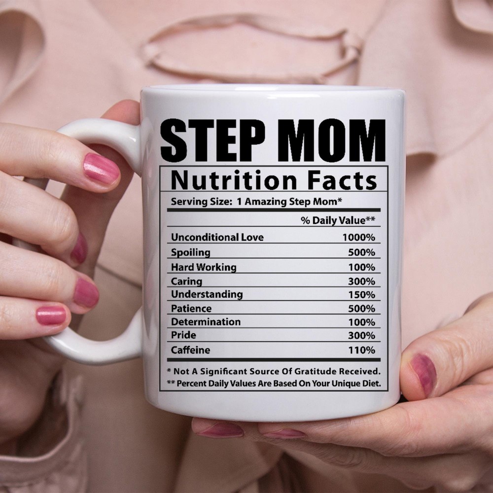Funny Step Mom Gifts Nutritional Facts White Coffee Mug Product Details.. This high quality 11oz. ceramic white mug has a premium hard coat that provides crisp and vibrant color reproduction sure to last for years. Perfect for all hot & cold beverages. The highest quality printing possible is used. It will never fade no matter how many times you wash it. Material: 100% Ceramic. Print both sides. Dishwasher and Microwave Safe. High Gloss + Premium White Finish. Printed in the U.S.A. Personalized & Custom. We support personalized and custom mug to add custom, when placing an order, you can add notes to the "order note" in shipping address section. Also you can contact us directly via message. Shipping Info. Ready to ship in 1 to 2 business days, All products are made-to-order and proudly printed in the United States. Shipped by USPS and DHL, You will receive your order in 5-7 days. Replace & Refund. All products are defective during shipping broken, chipped will be replaced free of charge. You are not satisfied with the product, we will refund 100% money to you. If any other issues arise, please do not hesitate to message, we would be more than happy to assist you.