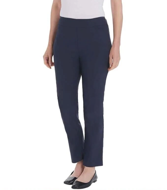 Hilary Radley Women's Mid Rise Slim Leg Built-in Tummy Control Pants, Navy, S
