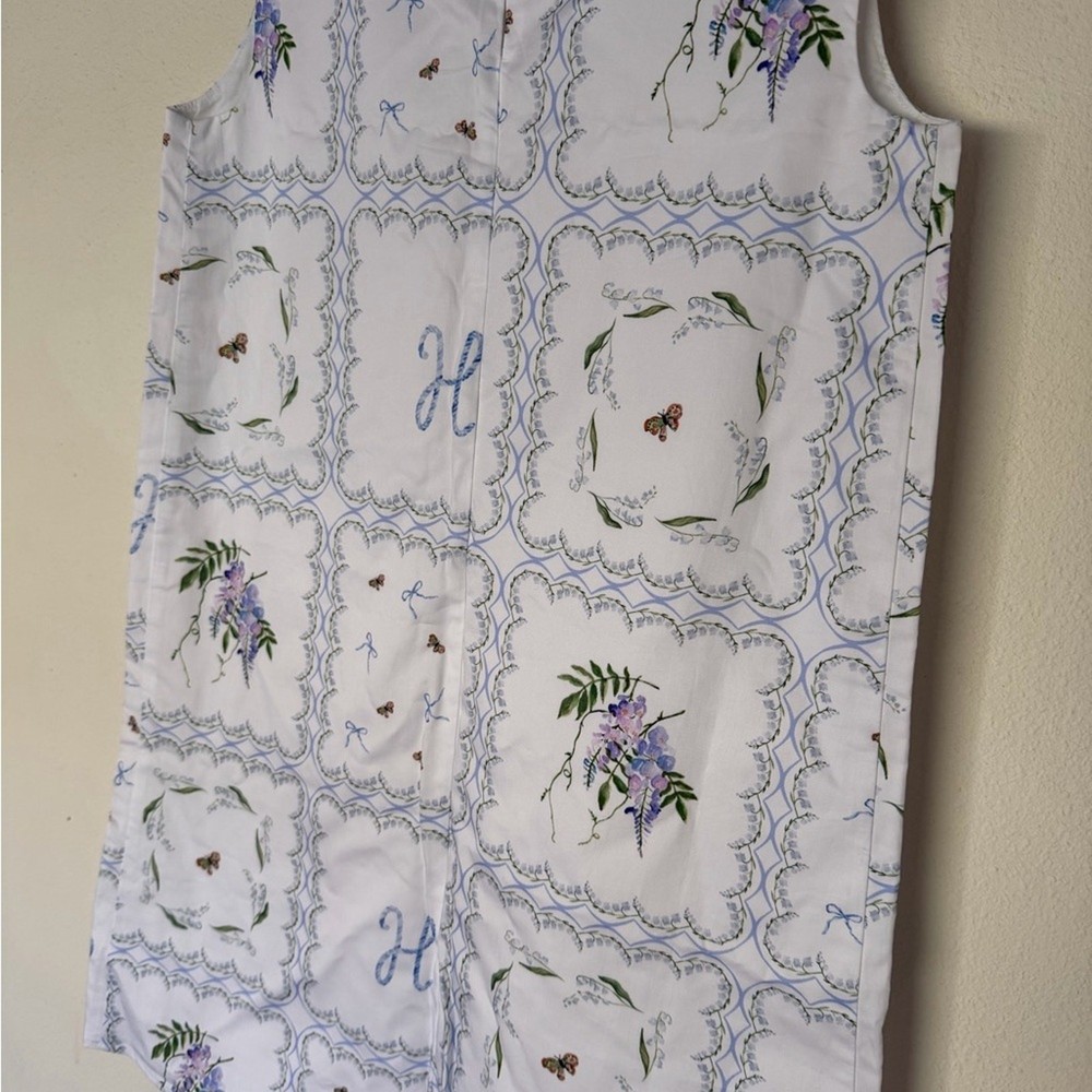 A classic sleeveless shift dress, made mini. A boatneck fit adds just the right amount of polish, while a structured but loose shape makes the dress easy to move and play in. Features Sleeveless High Neck Lined 100% cotton Excellent condition. Would be perfect for Easter or even just a little girl with an “H” initial!