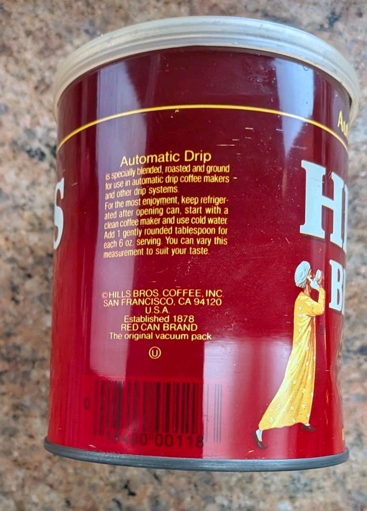 This vintage Hills Bros regular grind coffee tin is a classic piece of coffee and tea memorabilia. Featuring a striking red color and original design, this empty can with lid is a collectible item that harkens back to a bygone era of American coffee culture. Made in the United States, this tin is a nostalgic reminder of the iconic Hills Bros brand and the timeless appeal of coffee and tea merchandise. Perfect for collectors or enthusiasts of vintage advertising and food items, this coffee tin is a unique and charming addition to any collection.