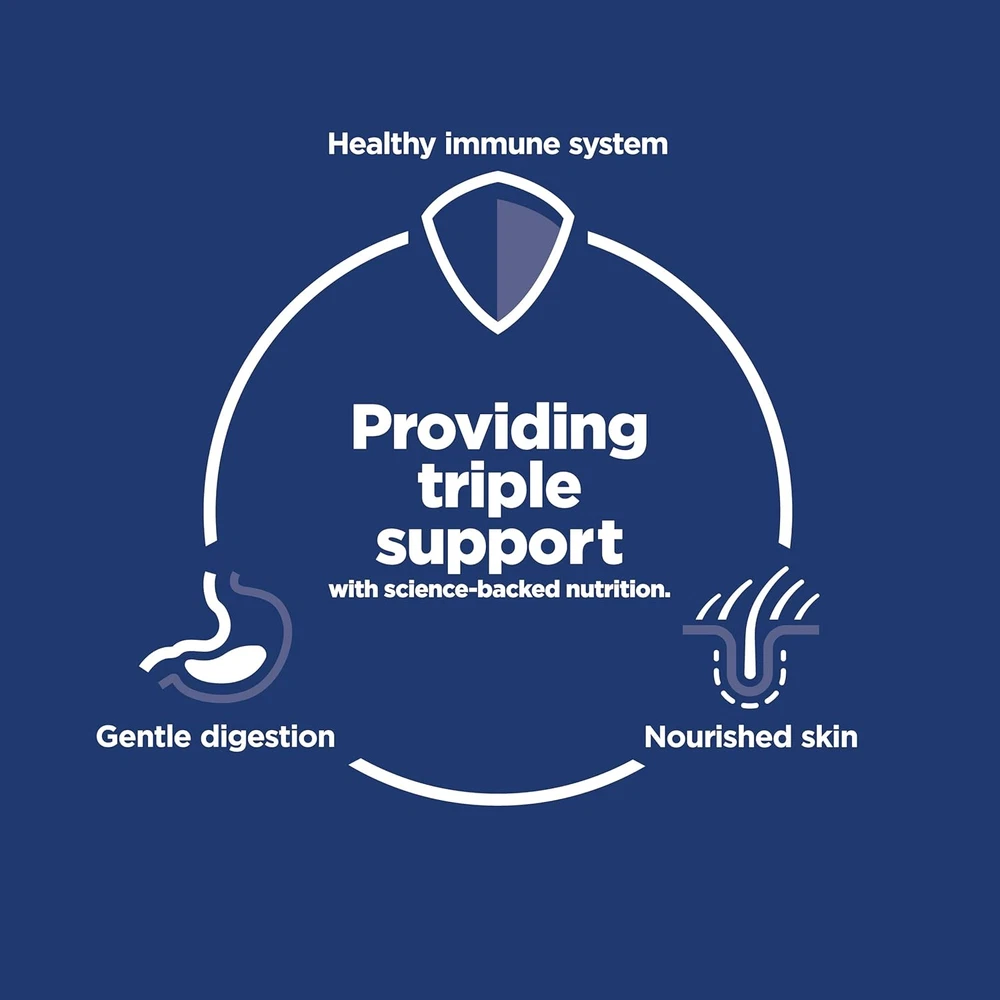 Hill's Science Diet Sensitive Stomach & Skin dry dog food provides optimal digestive health while nourishing skin & promoting a lustrous coat. Prebiotic fiber to fuel beneficial gut bacteria & support a balanced microbiome High digestibility for optimal nutrient absorption & easier stool pick-up Vitamin E & Omega-6 fatty acids for skin nourishment Additional info: At Hill’s, we study pets’ biology to understand how nutrition impacts digestive & skin health. Prebiotic fiber is important for the gut microbiome, the unique mix of bacteria essential for a healthy digestive system. Vitamin E, Omega-6s & other nutrients help maintain & protect skin. Recommended for: Adult dogs, including those with a sensitive stomach and skin Not recommended for: Puppies and pregnant or nursing dogs. During pregnancy or nursing, dogs should be switched to Hill’s Science Diet Puppy, Hill’s Science Diet Puppy Small Bites or Hill’s Science Diet Puppy Small Paws dry dog food.