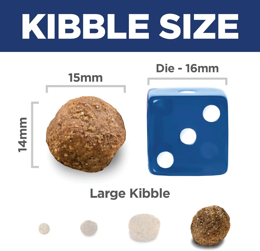 Hill's Science Diet Large Breed Adult dry dog food is specially formulated to fuel the energy needs of large breed dogs during the prime of their life. Made with high quality, easy to digest ingredients. Natural sources of glucosamine & chondroitin for joint health Omega-6s & Vitamin E for beautiful skin & coat High-quality protein for lean muscles Recommended for: Large breed adult dogs 1 - 5 years of age with an ideal weight of 55 - 110 lbs and giant breeds 1 - 4 years of age with an ideal weight of 110+. Not recommended for: Large breed puppies, pregnant or nursing dogs. During pregnancy or nursing, dogs should be switched to Hill’s Science Diet Puppy Large Breed.