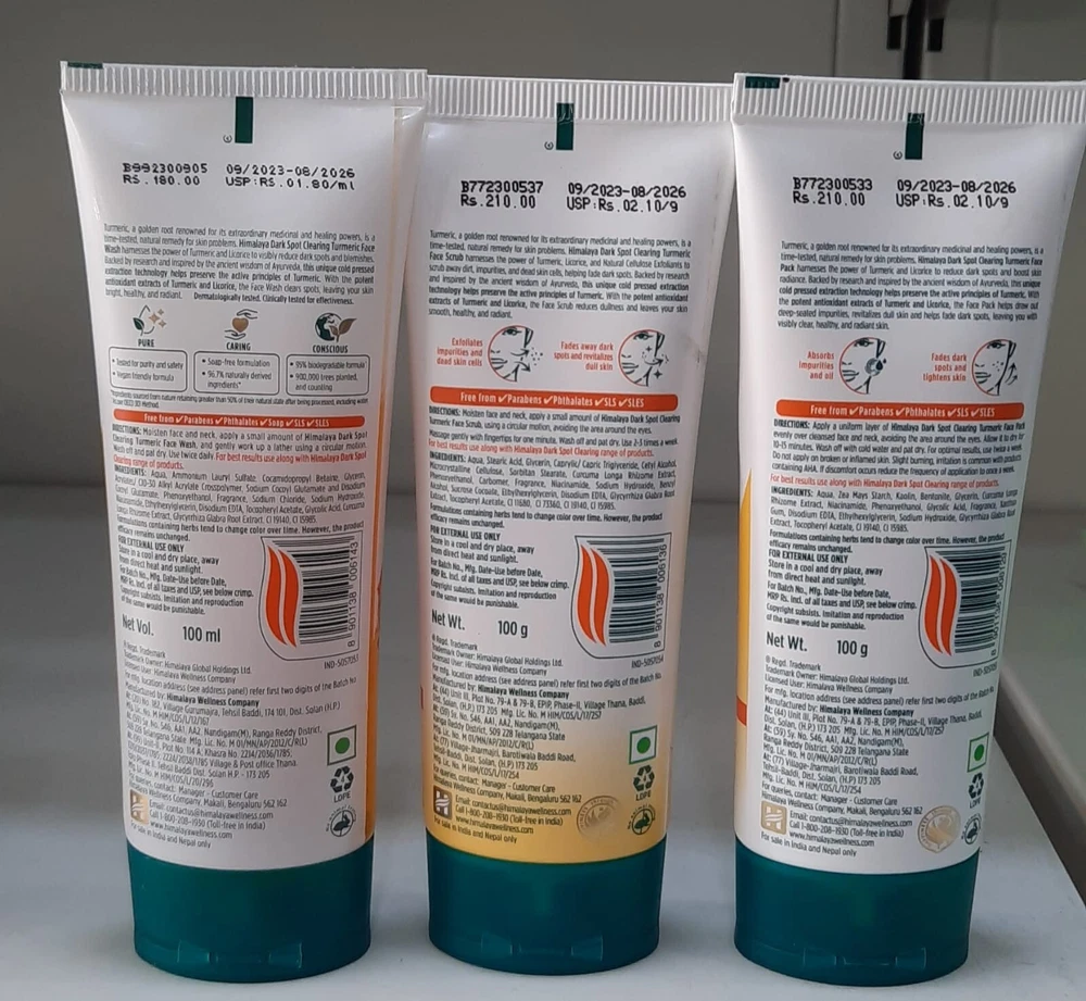 Himalaya Dark Spot Clearing TURMERIC FACE WASH + SCRUB + PACK 100 gm each