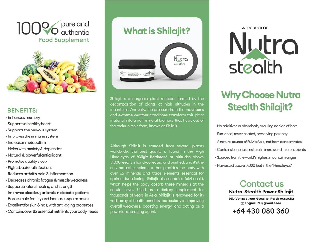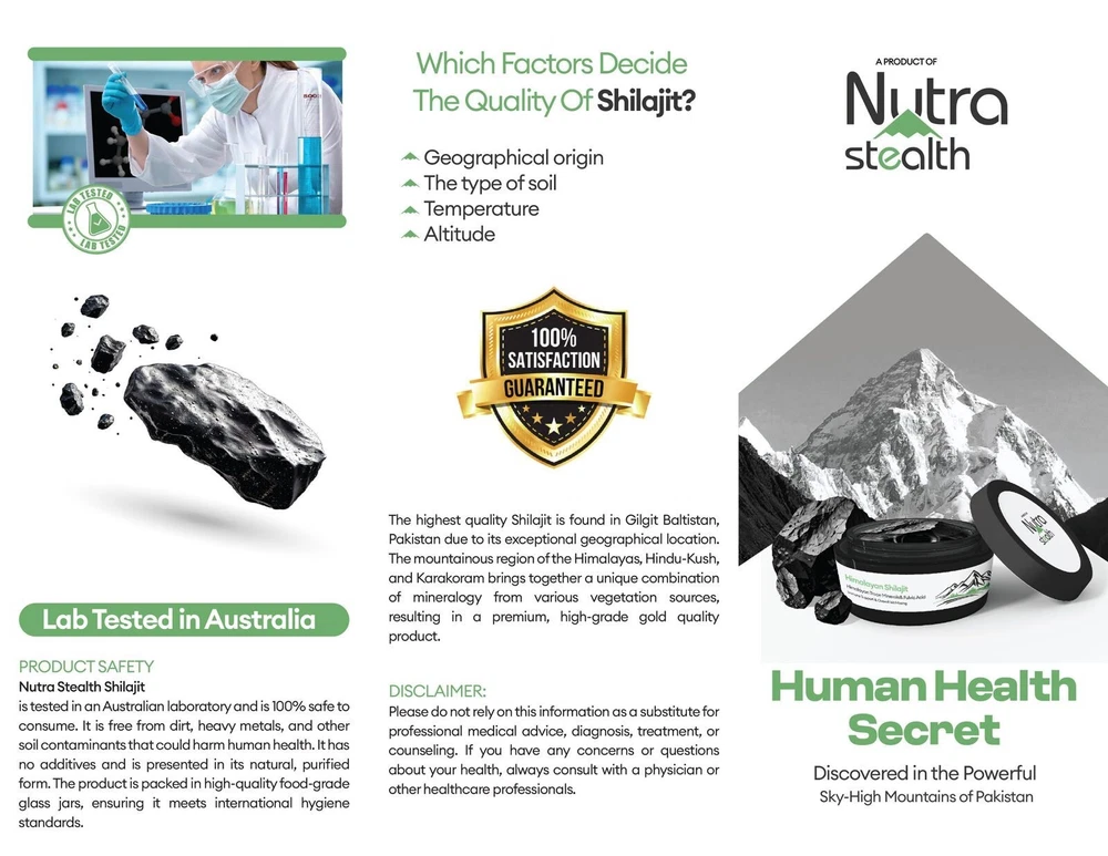 Item description from the seller Description: Name: Nutrastealth Himaliyan Shilajit Net Content: 15 ML Type: Himaliyan Trace Mineral Applicable Objects: Adults Storage Method: Cool Place Features: 1. Reduces chronic fatigue and pain, anti-aging, immune-boosting, nutrient-rich, increases strength and endurance, but also has antioxidant properties, anti-inflammatory and boosts vitality/sexual health 2. Helps Burn Fat, Accelerate Metabolism And Lose Weight 3. Safe Without Any Side Effects 4.Suitable For All Skin Types 5. Effectively Crush Fat Stored In The Abdomen And Reduce Excess Subcutaneous Fat Package Included: 1 * Shilajit Resin