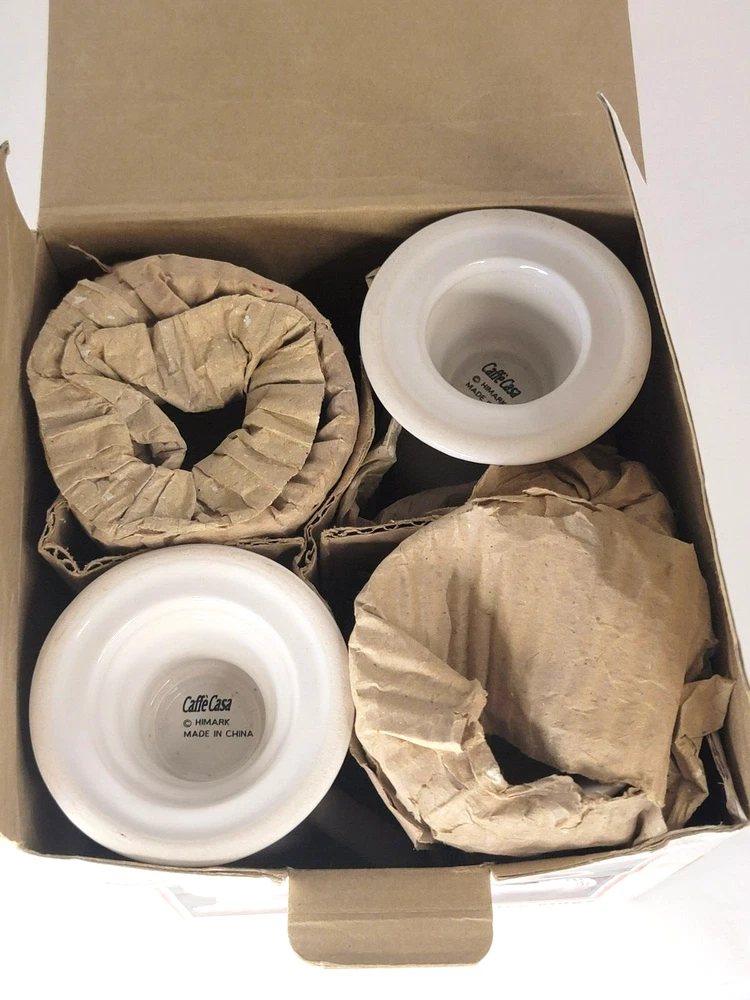 Add a touch of contemporary style to your coffee time with the Himark Caffe Casa La Strada Irish/cappuccino stemmed coffee mugs. Made of high-quality ceramic and porcelain, these mugs come in a set of four and can hold up to 10 ounces of your favorite hot or cold beverage. Featuring a geometric pattern in white, these mugs have a unique pedestal design that makes them stand out. The Himark Caffe Casa La Strada model is perfect for those who love to enjoy their coffee in style. Made in China, these mugs are a must-have addition to your dinnerware collection.