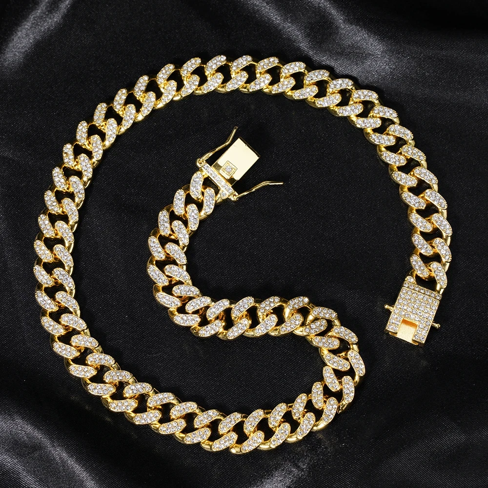 Product Information Product Name: 15mm Wide Cuban Chain Gold Plated Necklace Material: Zinc alloy and others Colors: Silver, Gold, Rose Gold Width: Chain width is 14mm\13mm\9mm\4mm Length: 16inch, 18inch, 20inch, 24inch Weight: 20inch 100g Product Features 1. Can customize any size or develop new models 2.100% physical photography (small color difference is a normal phenomenon) 3. Exquisite craftsmanship, comprehensive polishing process, and smooth surface