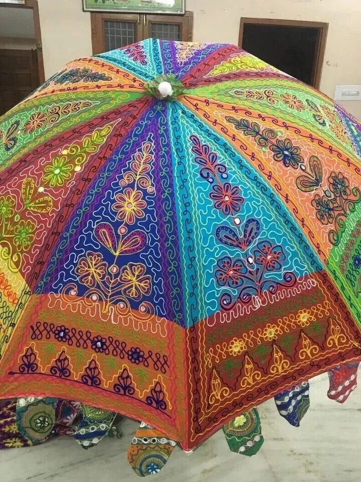 !! Item Description!! Item - 1 PC Garden Umbrella / Parasol / Patio Design - Elephant Embroidered Fabric - Cotton , wool Embroidery Size - 72" Inch (Diameter) Approx. Color - Multi Color !! Product Description!! * Beautiful Indian Hand Embroidered Cotton Fabric umbrella is handcrafted by village artists in Rajasthan. * Diameter of open umbrella is 72" inch (167 cm ) approx. * The umbrella is beautiful and complete decorated with embroidery & Sequins work . These handicrafts are designed in various color combination and are offered in a multitude of motifs, patterns, various other specifications. *Eye-catching appearance, wide space and high load bearing are added on features that makes our umbrella a preferred one . *These umbrellas are handcrafted and hence, give a gorgeous overall look. !! Shipping Policy!! 1. We Ship Within 1-2 Business Days After Receiving Order/ Payment. 2. Country's Custom Duties, Taxes & Charges are to be paid by buyer if there are any. !!Payment Policy!! 1. We Will Accept Payment Via Payoneer (Paypal) Only. 2. International Buyers are responsible for their Country Custom Duties & other charges. !!Return Policy!! 1. Returns Accepted From Buyers Within 30 Days of Delivery. 2. Shipping Charges will be made by Buyers When Return. !!Other Products!! We are also selling Ottoman Cover, Cushion Cover, Pillow Cover, Pouf Cover, Tapestry Wall Hanging and many more under Home Decor Category. "Customer is a king" seller depends on you, so your positive feedback is extremely valuable to us. If you have any concerns about your order, please contact us through an eBay message to resolve any issues before leaving negative feedback or opening a dispute. We will try our best to resolve it. Our goal is to give the best service to all customers. We ship the product after performing the high quality check .We are always committed to doing our best” Thank You. Have A Nice Day. Perfect Gift for any Occasion