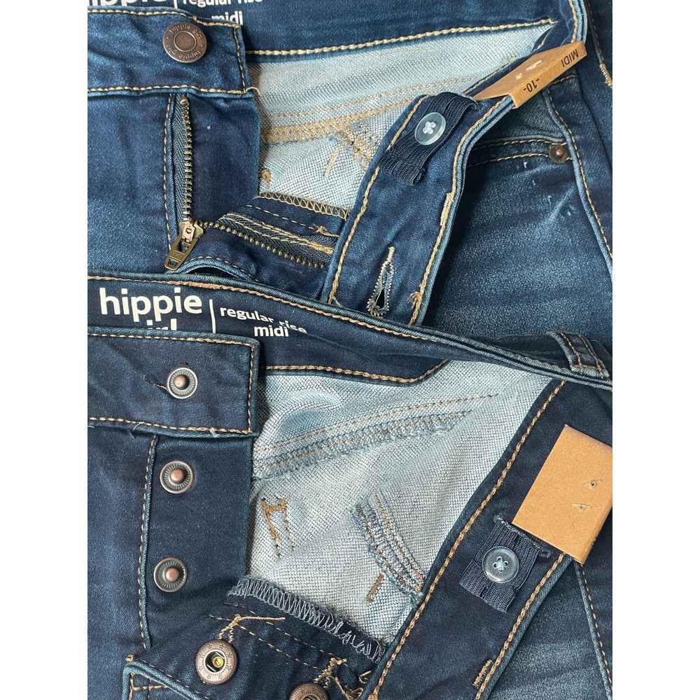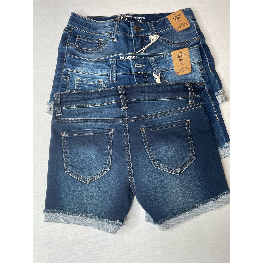NWT Hippie Girl Super Stretch Denim Shorts Midi Regular Rise Size 10 Set Of 3 Description: Condition: New with Tags Brand: Hippie Girl Size: 10 Color: Blue Regular Fit Flat Front Mid Rise Super Stretch Adjustable Waist Dark Wash Measurement: Inseam: 3.75" B136 B137 B138 B139