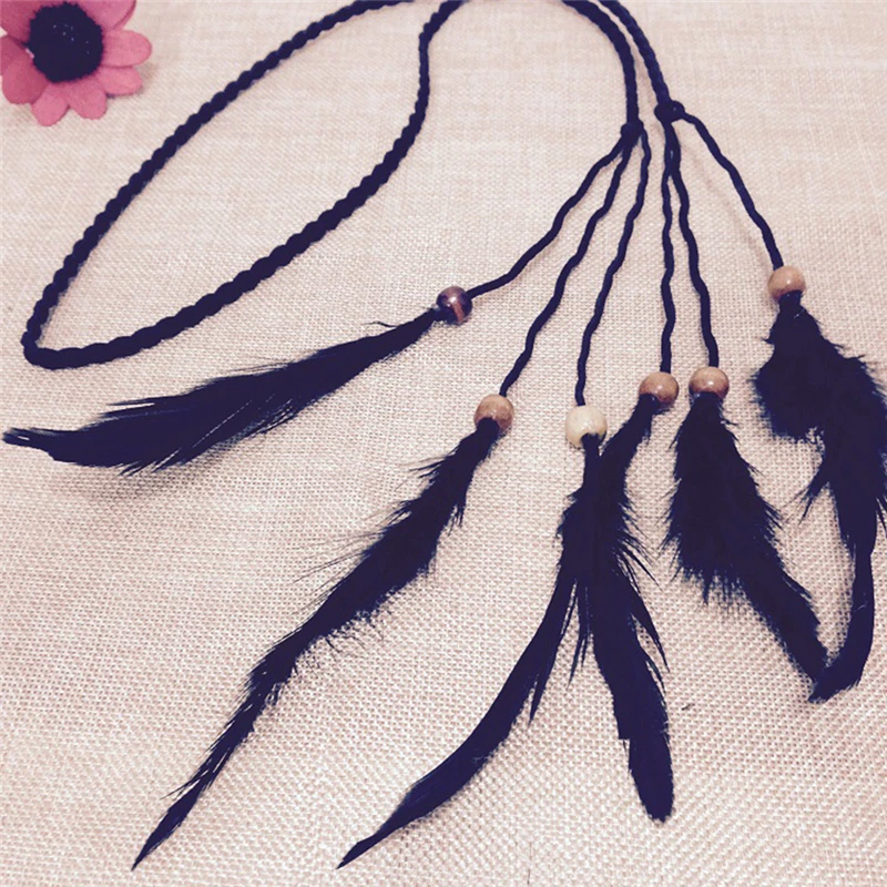 Features: 100% brand new and high quality. Unique design, handmade,let you in the crowd is full of beautiful, looks more charm and brighter. This feather hair band is easy to match clothes, you can wear it to attend some masquerade,festivals, photography, etc. In your daily,If you want your drab clothing with more dazzling.The feather headband is essential that you choose. This headband can increase the atmosphere for some specific occasions. Specifications: Material: Rope,Feather,Beads Color: Black/Khaki/Chocolate Quantity: 1 Pc Size: About 106cm-115cm (41.7-45.3") Package includes: 1x Feather Headband Note: 1. Because of the size measurements are handmade, so there may be 0.1-0.5inch error 2. Please understand because of the light irradiation or computer display difference, so I can't guarantee photos and real color is 100% the same. Preview: