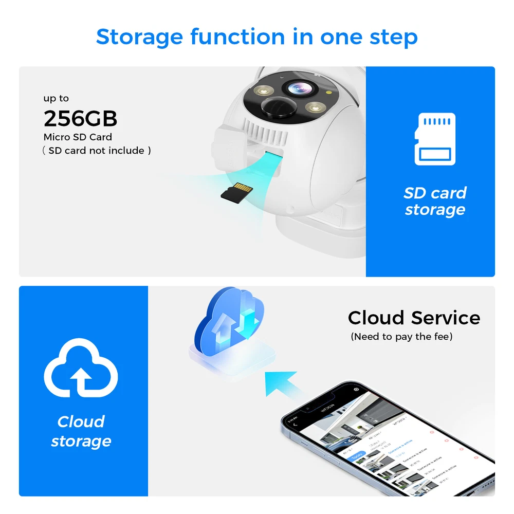 please note ,this wireless cctv system work with 2.4G wifi . this camera not 24h recording .it is PIR motion detect recording . Please note : 1.When the camera detects an animal or person entering the detection area, it will be awakened and enter recording mode. If there are no people triggering it in the environment,the camera will enter sleep mode. 4MP HD Picture Quality Day and Night You won't miss any event around your house with CMOS image sensor, the camera provides you with clearer and smoother video, two modes of night vision system lets you see all the details within 65 feet clearly even at night. PIR Detection Technology PIR sensing technology, don't worry about receiving false positives caused by flying insects etc, it will push an alarm notification to you when detect humans' movement. When the camera detects people, the camera will enter the recording mode, when no people are detected, the camera will enter the sleep mode to store power, the working mode of this camera is not 24H recording. Two-Way Audio Function This camera built in mic and speaker,you can chat with Neighbors or visitors, also can scare off unwelcome people through light alarm and sound alarm . 100% Wire-Free and Solar Powered The solar security camera comes with a built-in high-capacity rechargeable battery, fully charged through the solar panel or USB cable.The camera will be in a sleepy mode until detect motion, it will work for about 30 days after fully charged. APP Remote & 360° View The Wireless WiFi camera can work with NVR box, phone APP, computer, Alexa. 120-degree field of view and PTZ feature provide you with no blind spot surveillance, real-time viewing monitoring no matter wherever you are. Smart Playback & Share with Family The camera kit comes with a 1T HDD, all recording will be stored in it, you can view the playback anytime. Share the camera to you family through "Eseecloud" APP. All images are encrypted, no one can access the information without your consent. IP66 Waterproof Professional out battery camera work even in storm .